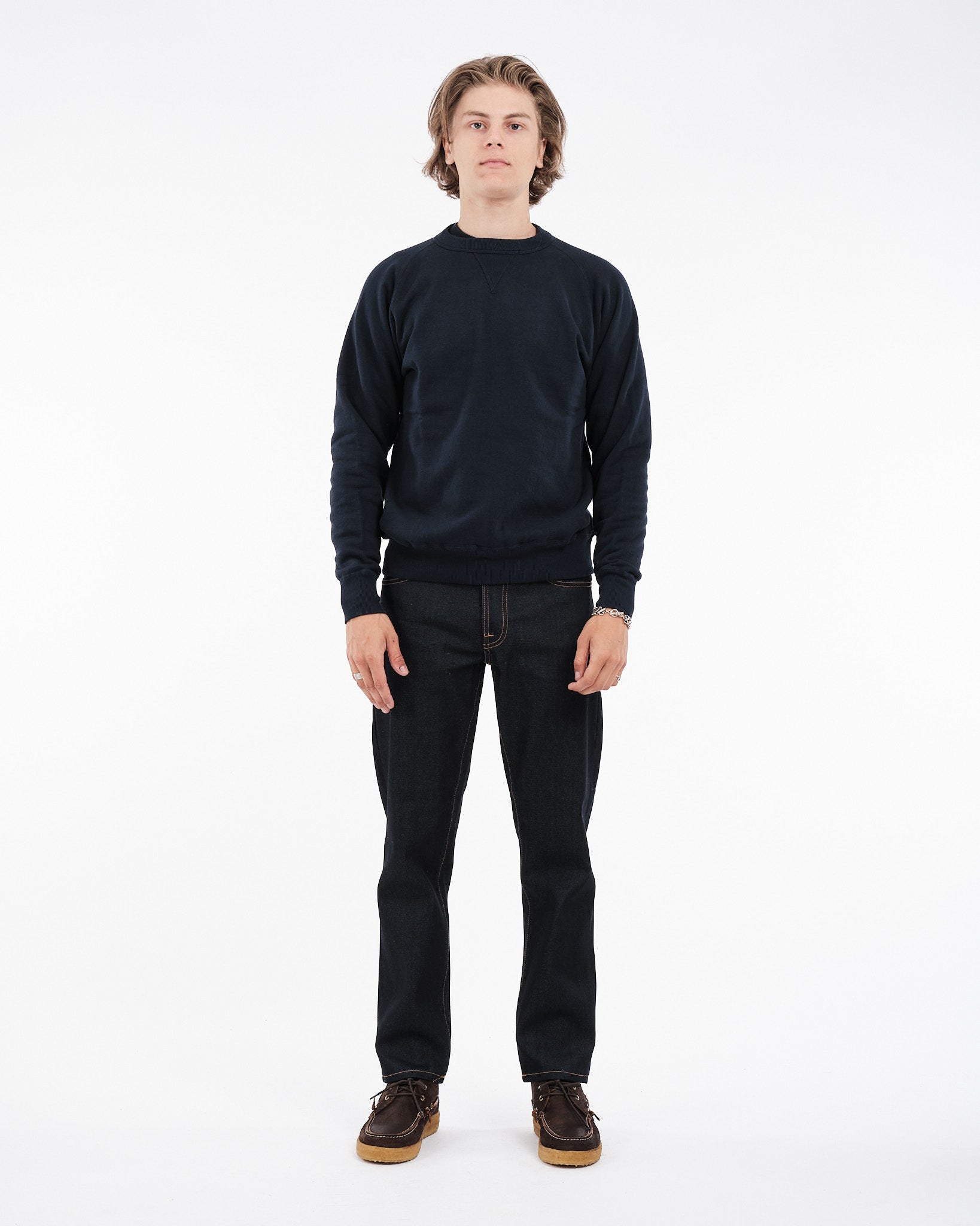 Le Puamana Crew Neck Sweat Dark Navy by Sunray Sportswear est un classique dans la fabrication. Inspiré par les années 50, ce pull d'ajustement traditionnel est détendu, plus boxé et légèrement plus court qu'un ajustement moderne. Le col, la conception des côtes et les tissus sont tous traditionnellement stylés. Fabriqué au Japon, il possède 420g de tissu en toison japonais pour un confort supérieur. Ce nouveau modèle, avec son design à manches Raglan et son double col «V», est déjà un favori à Meadow. Sa production sur des machines à tricot circulaire antiques assure un vêtement transparent et durable qui ne perd pas de forme.