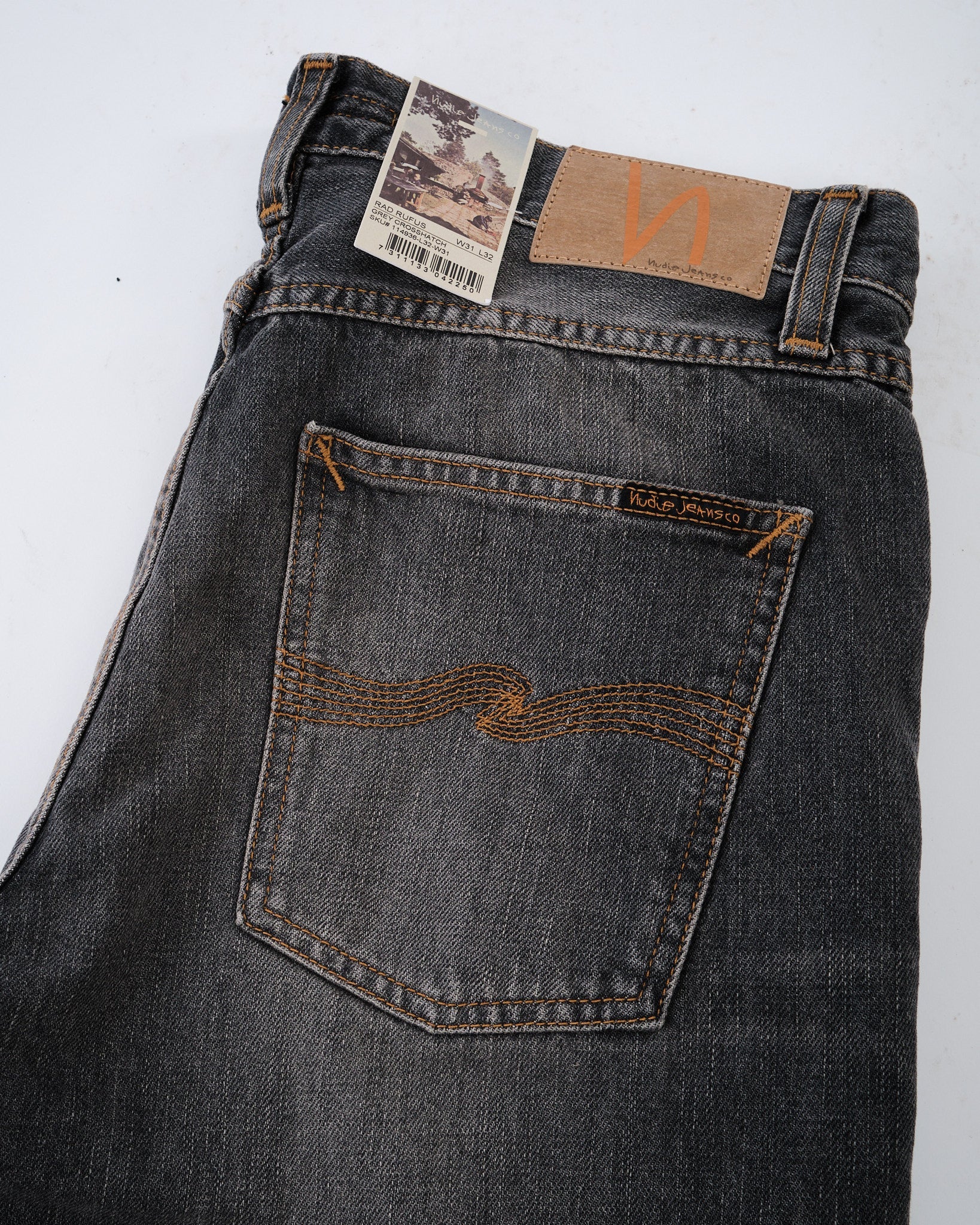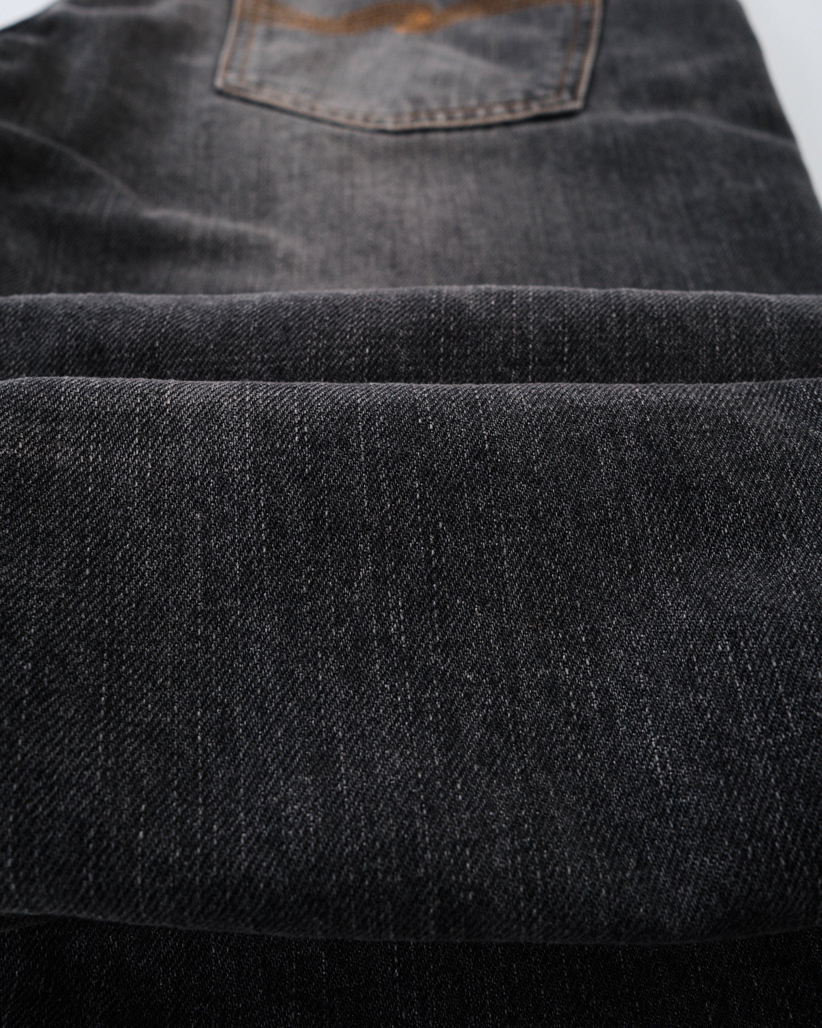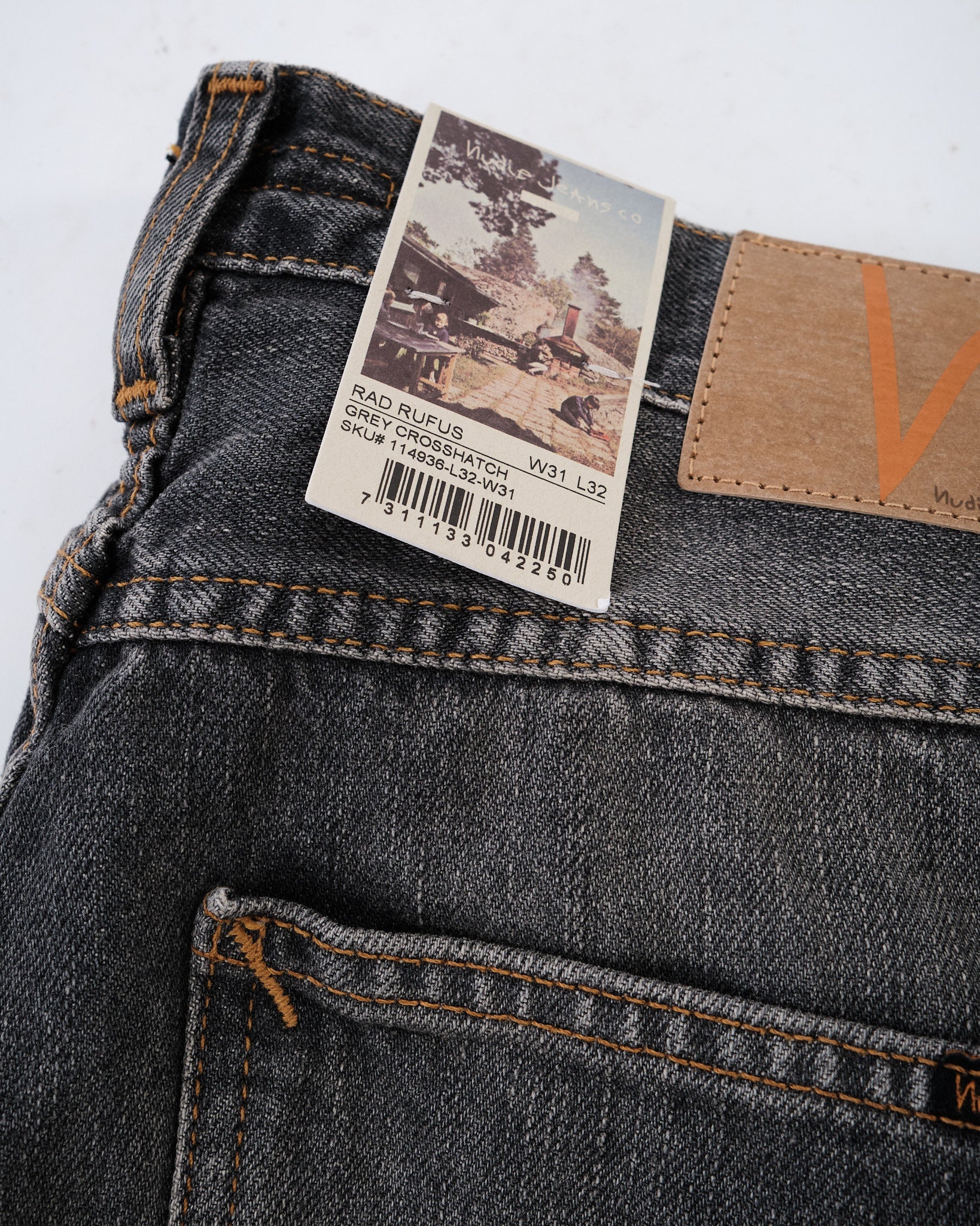 Entrez dans le style en denim audacieux avec Nudie Jeans CO. Rad Rufus Grey Crosshatch. Ces jean à taille haute et à taille régulière avec une jambe droite présenter une frappante lavage gris avec des contrastes profonds. Fabriqué à partir de denim noir, le tissu présente un texture de hachat accidentée, créant riches hauts et bas avec une apparence dynamique et slubby.