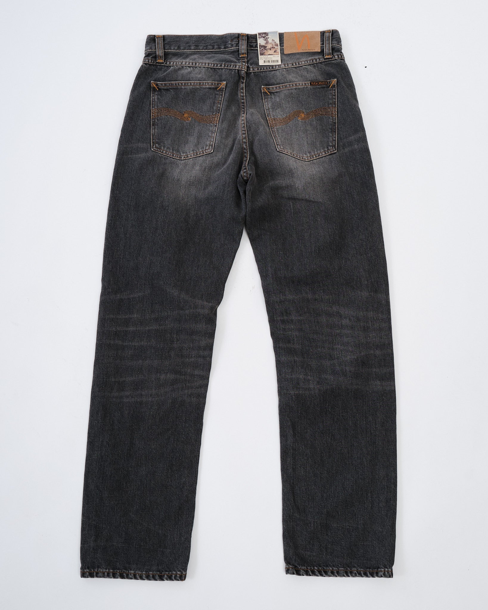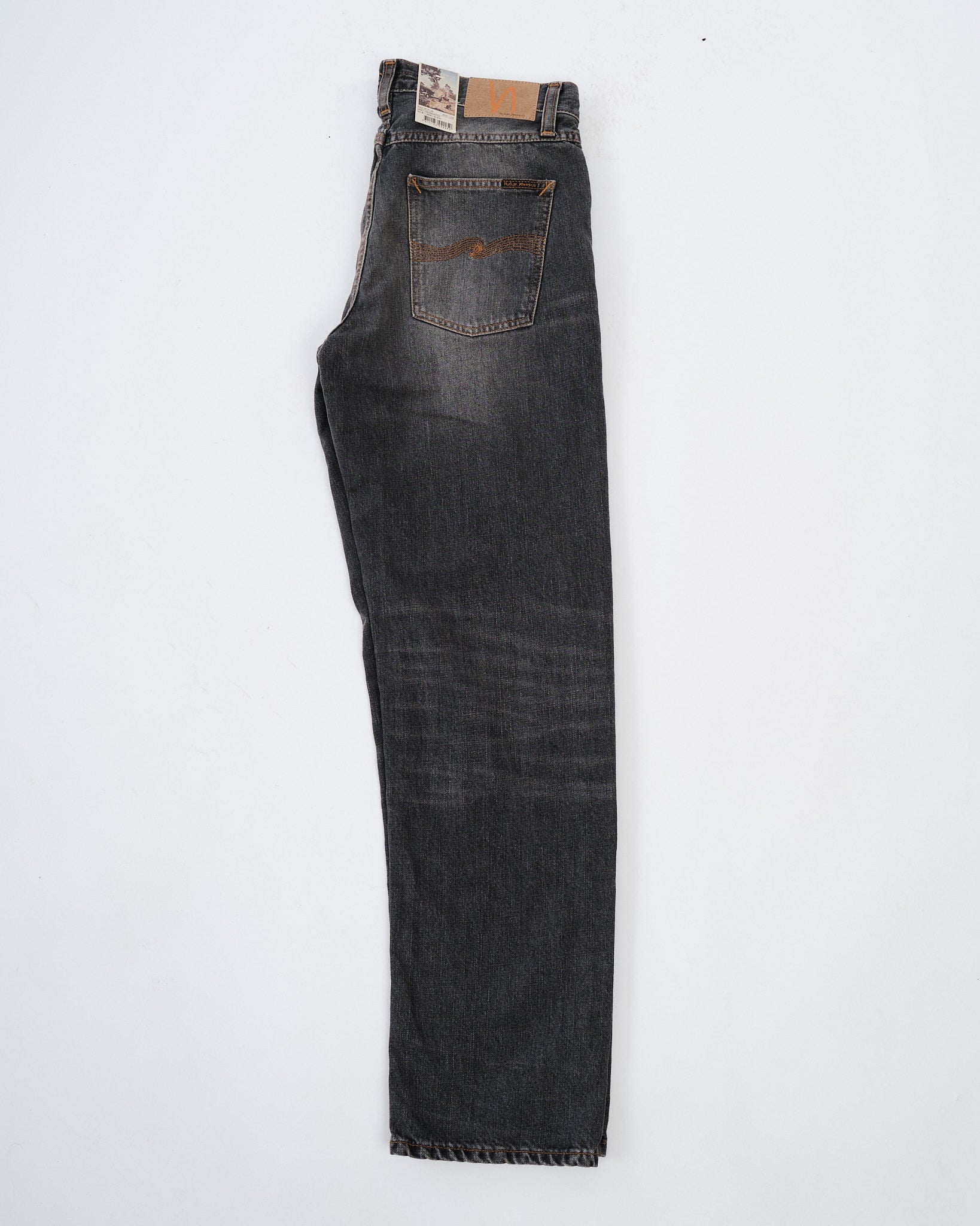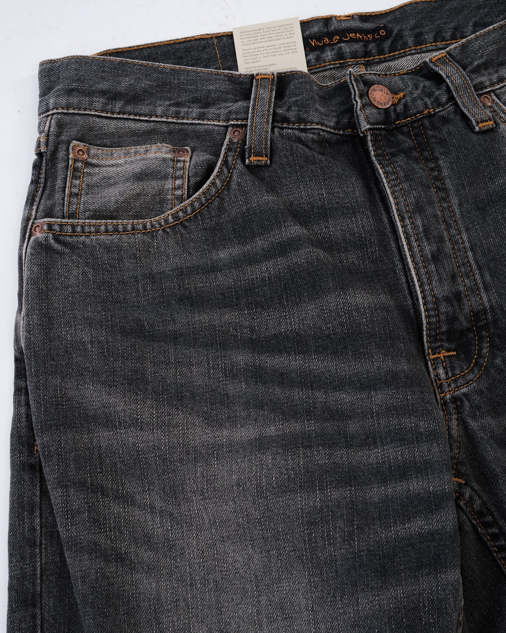 Entrez dans le style en denim audacieux avec Nudie Jeans CO. Rad Rufus Grey Crosshatch. Ces jean à taille haute et à taille régulière avec une jambe droite présenter une frappante lavage gris avec des contrastes profonds. Fabriqué à partir de denim noir, le tissu présente un texture de hachat accidentée, créant riches hauts et bas avec une apparence dynamique et slubby.