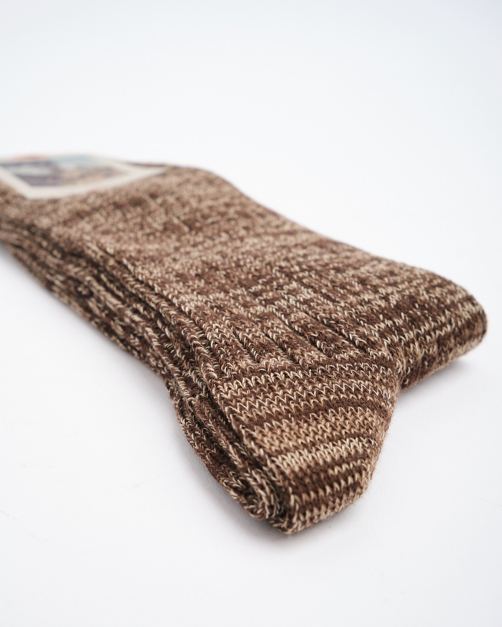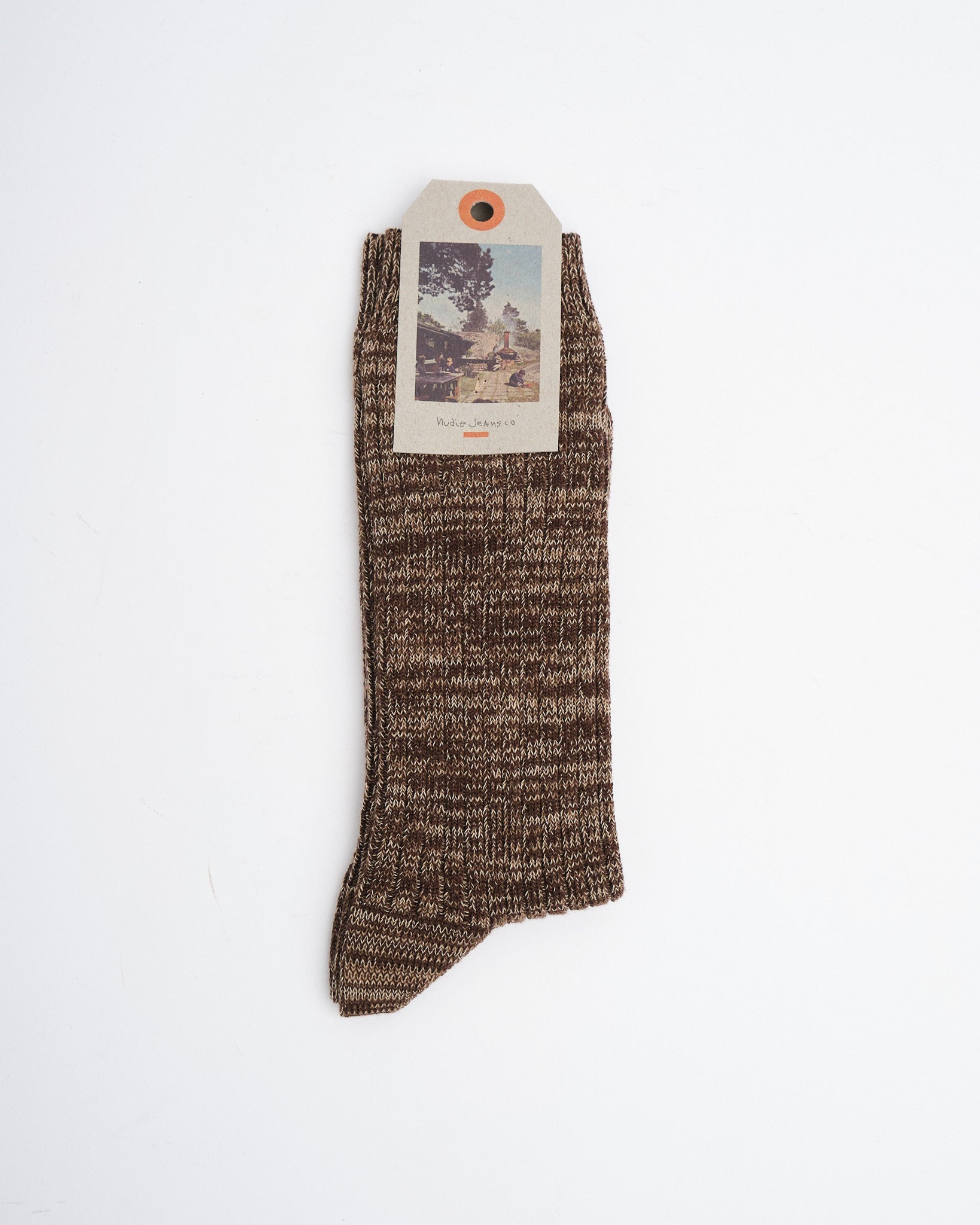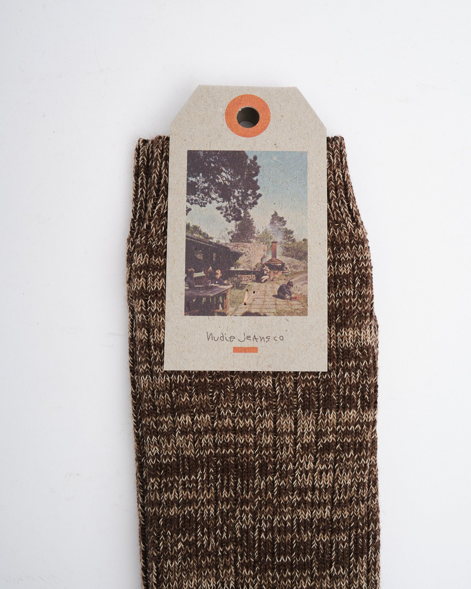 Le Nudie Jeans CO. Offre les deux confort et style intemporel, fabriqué dans un Trièce de côte de poids moyen 3x1 doux pour une ajustement bien mais respirant. Le mélange de fils bruns crée un Effet de mélange riche, donnant à ces chaussettes un look classique et texturé.