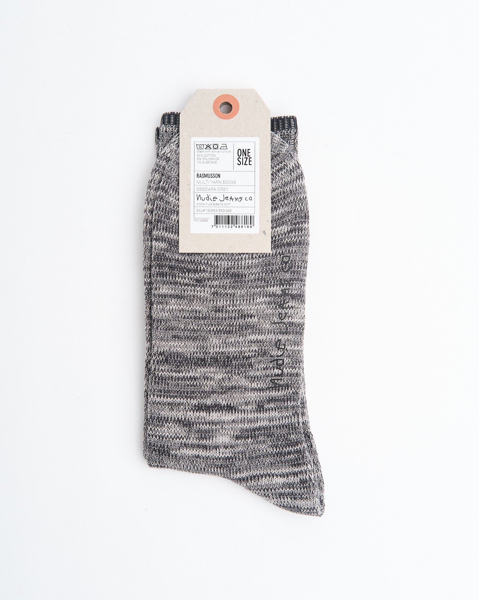 Le Nudie Jeans Co Rasmusson Multi-Yarn Choques dans Gris foncé Combinez le confort, les fonctionnalités et la durabilité. Fabriqués à partir d'un mélange de coton biologique doux, ces chaussettes offrent une respirabilité et une durabilité, ce qui les rend idéales pour un usage quotidien. La construction à plusieurs verges offre un aspect texturé et une sensation confortable, tandis que la nuance gris foncé assure une polyvalence pour jumeler avec une gamme de tenues. Avec des orteils et des talons renforcés pour une durabilité supplémentaire, ces chaussettes sont un choix fiable pour l'usure quotidienne et reflètent l'engagement de Nudie Jeans Co envers la qualité et l'artisanat de l'éco-conscience.