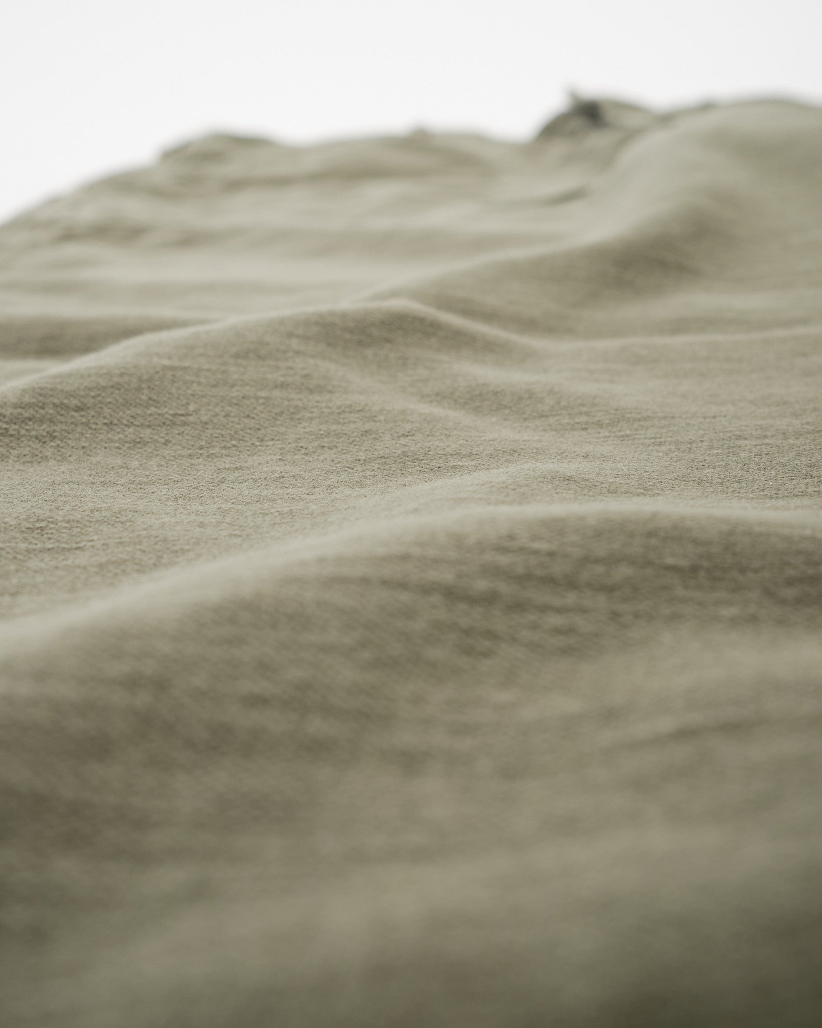 Ils conservent toutes les caractéristiques fonctionnelles de leurs homologues OG : braguette à boutons, languettes de réglage à la taille, poches arrière sécurisées par un rabat, et poches avant allongées. La coupe est détendue le long de la jambe avec une silhouette large et droite et une montée profonde, vous offrant de l'espace sans perdre en proportion. Avec le temps, le tissage sateen inversé et les fils irréguliers s'enrichissent en profondeur et en texture subtile, rendant chaque paire unique.