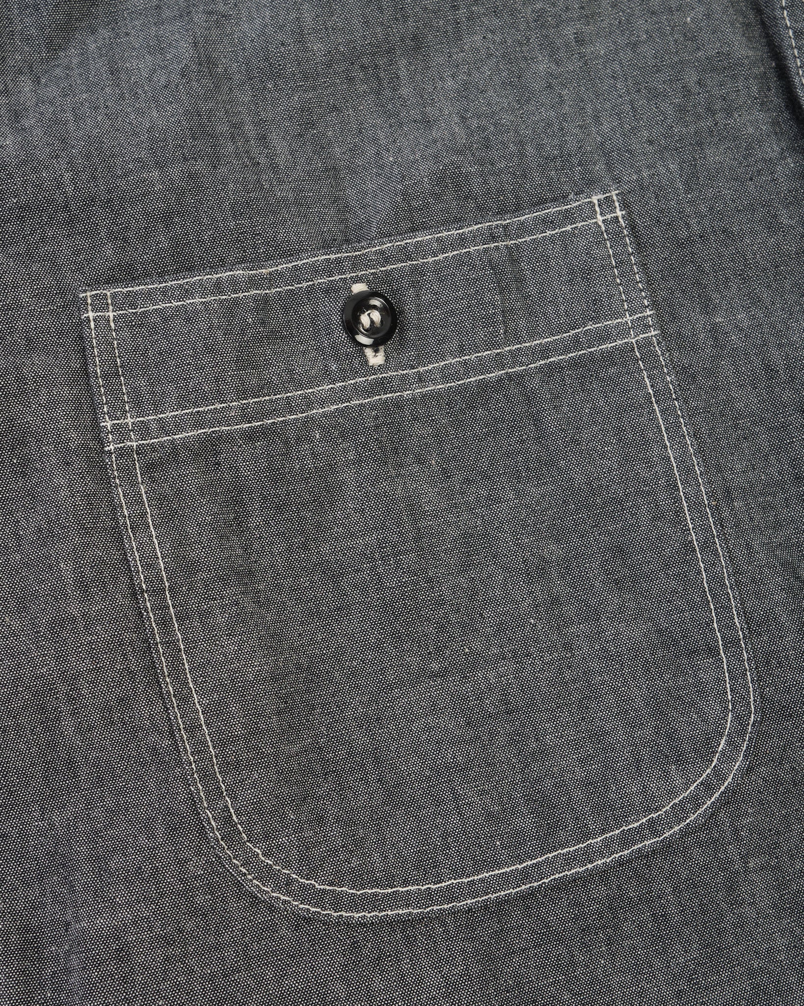La orSlow Chemise de Travail Chambray Coupe Relax en Noir apporte une touche audacieuse et utilitaire à un classique du vêtement de travail. Tissée au Japon en coton chambray teint à la corde, elle offre une texture subtile et une teinte noire profonde qui s'adoucit avec le temps.