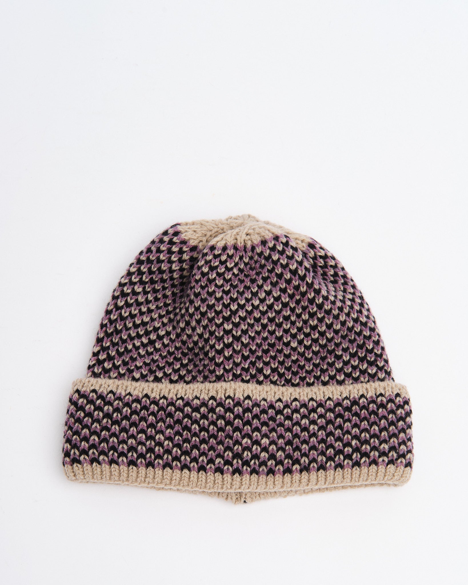 The Reverse Geo Beanie in Beige by Found Feather blends neutral tones with bold texture. Crafted in Japan from washable Italian Donegal wool, this beanie features a reverse jacquard knit pattern that adds tactile contrast and visual rhythm. With its soft stretch yarn, single-panel construction, and regular 7 cm brim, it’s built for comfort and structure in equal measure. The woven label and QR-coded care tag round off a piece that’s thoughtfully designed, down to the last stitch.