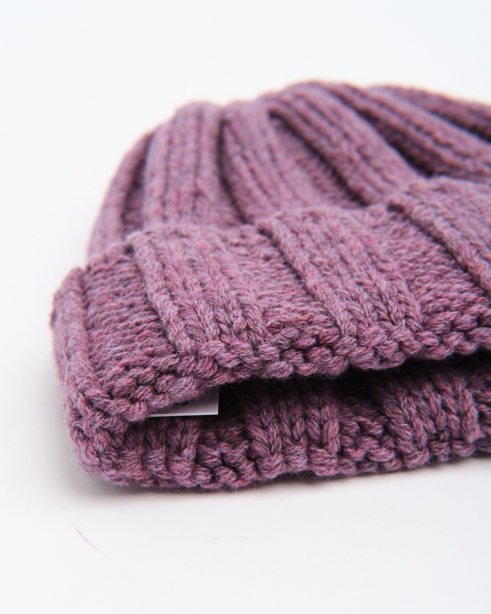 The Rib Beanie in Plum by Found Feather brings softness and structure together in one elegant silhouette. Made in Japan from washable Italian Donegal wool, it features a cable knit rib pattern that adds both stretch and texture. With a taller crown for a deeper fit and a regular 7 cm brim, it offers timeless shape and cozy comfort. A one-panel design, soft stretch yarn, and QR-coded care label make this unisex essential as practical as it is refined.