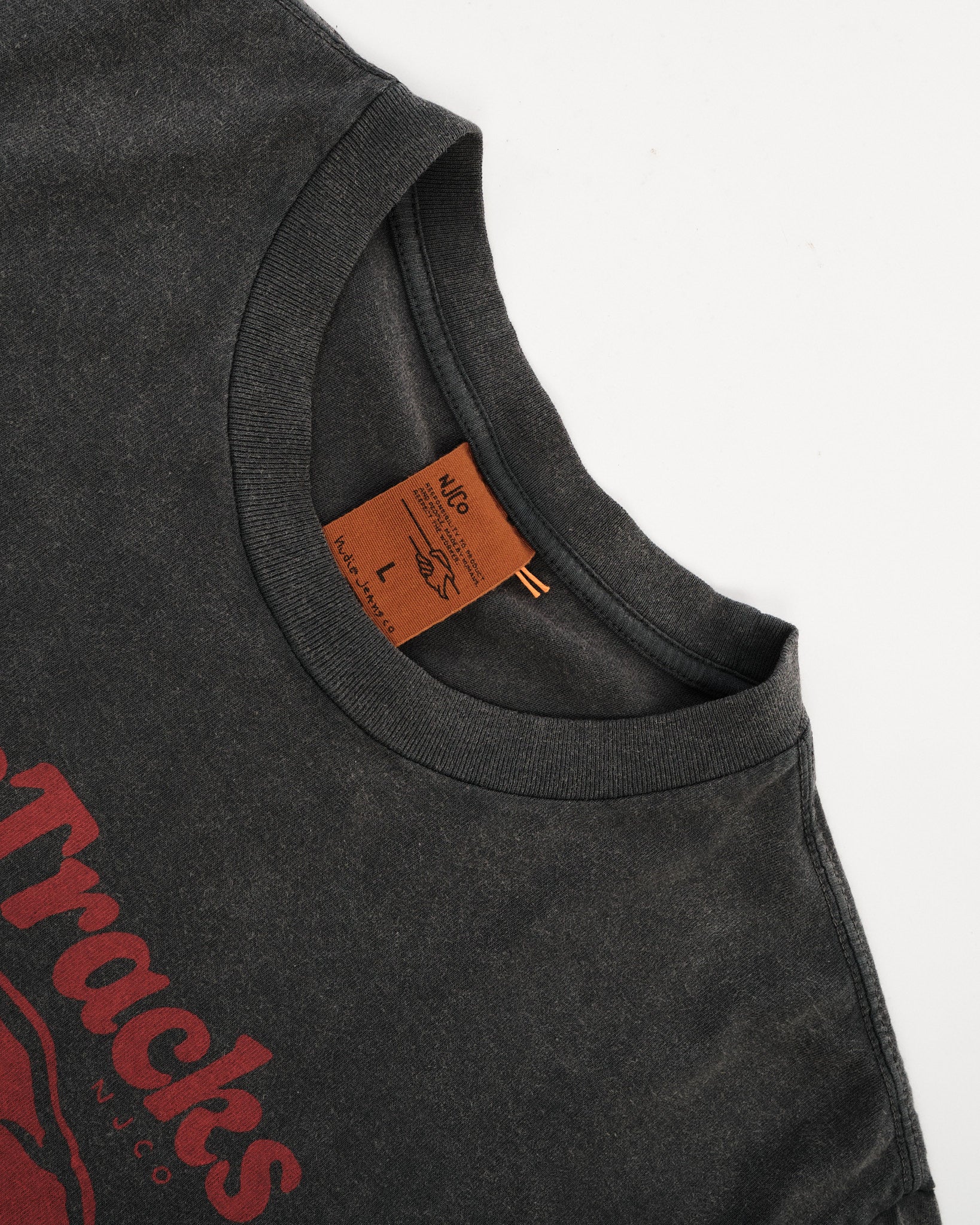 The Roy Deep Tracks T-Shirt in Antracite hits all the right notes — classic, relaxed, and built with character. Made from organic cotton with open-end yarn for a dry hand feel, it’s garment-dyed and finished with a fade-out wash that gives it a gently worn-in look from day one. A tonal chest print keeps it subtle but expressive, while the 1x1 ribbed neck and regular fit make it easy to wear on repeat. A staple tee with just the right amount of edge.