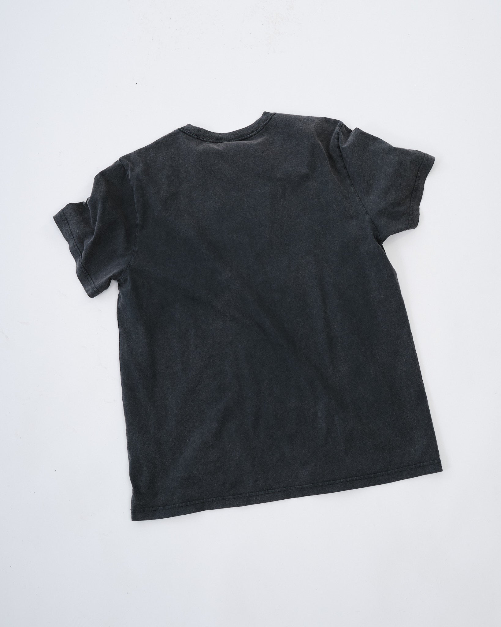 Le ombre anthracite fanée est réalisé à travers Dying du vêtement et lavage de décoloration, résultant en un esthétique vécue Cela se marie sans effort avec le denim. Au fil du temps, la couleur continue de s'estomper, améliorant encore l'appel vintage. UN Détail d'impression thoracique complète le look, faisant de ce tee un mélange parfait de style décontracté et de caractère intemporel.