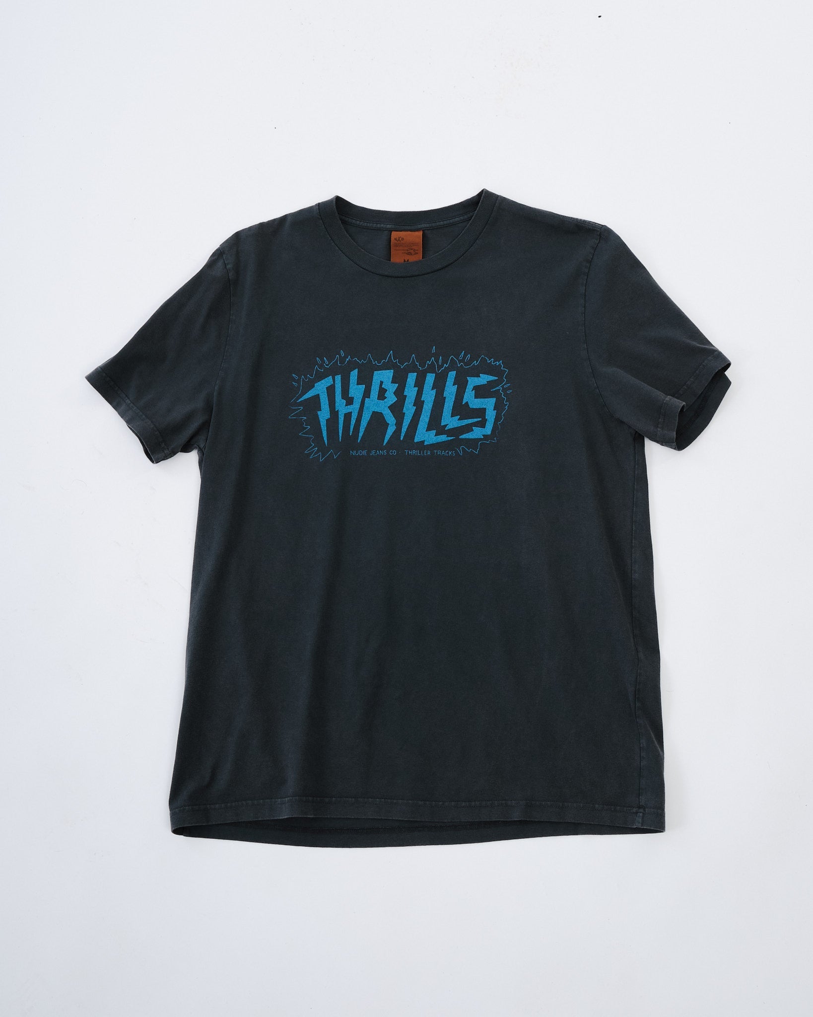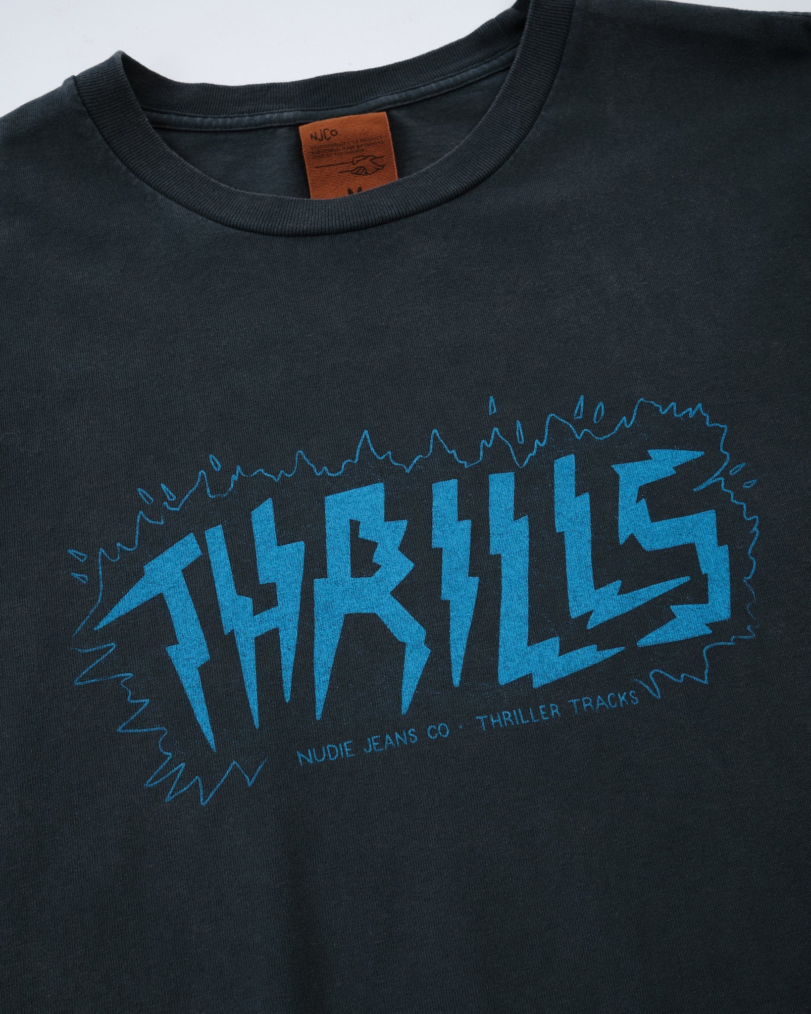 Le Nudie Jeans CO. Roy Thriller Tracks T-shirt Antracite est un T-shirt d'équipage d'inspiration vintage conçu pour un naturel look usé. À partir de 100% coton biologique, il s'agit fil tourné à extrémité ouverte, qui crée un Structure ouverte avec une texture irrégulière, une sensation de main sèche et une subtile chaufferie.