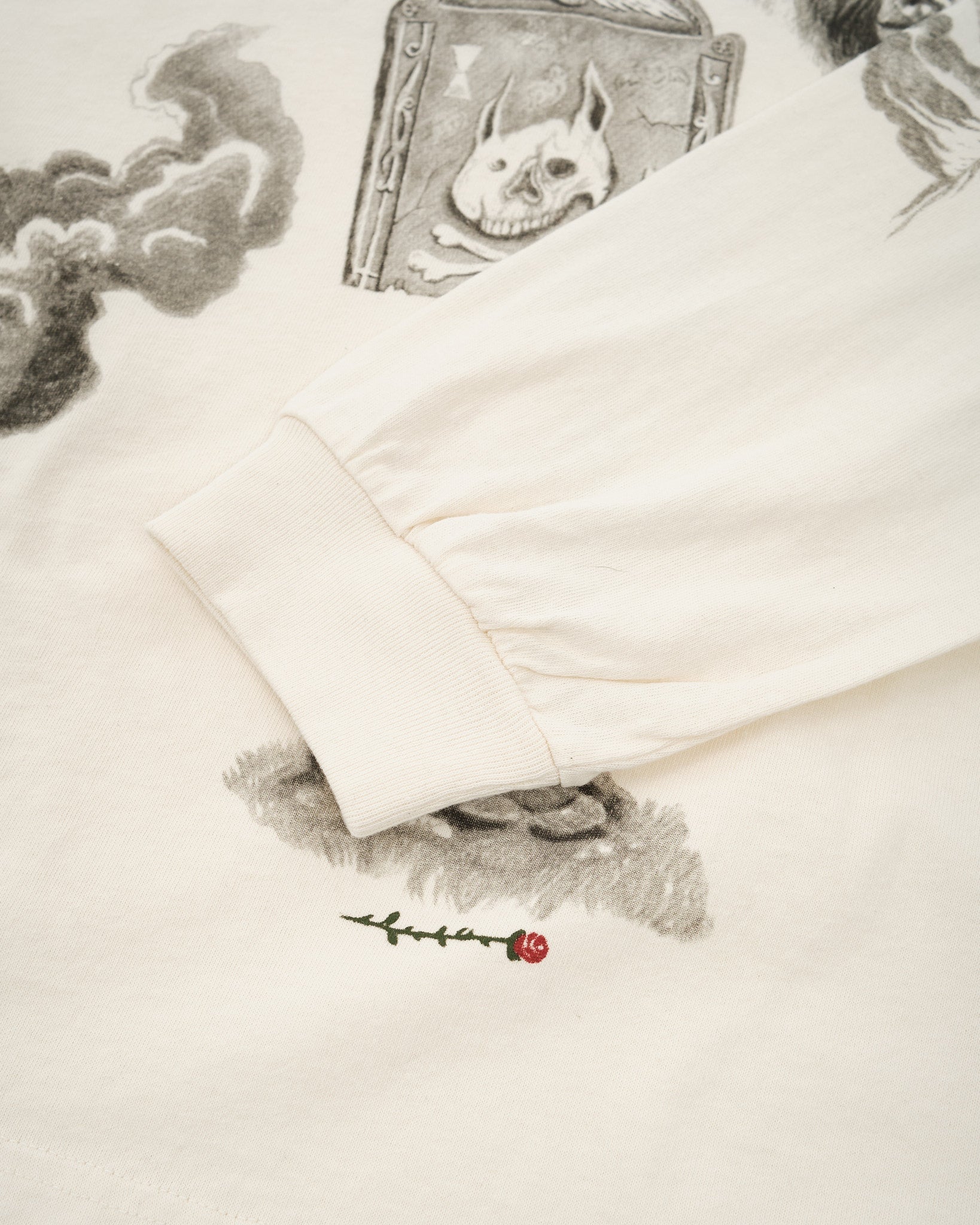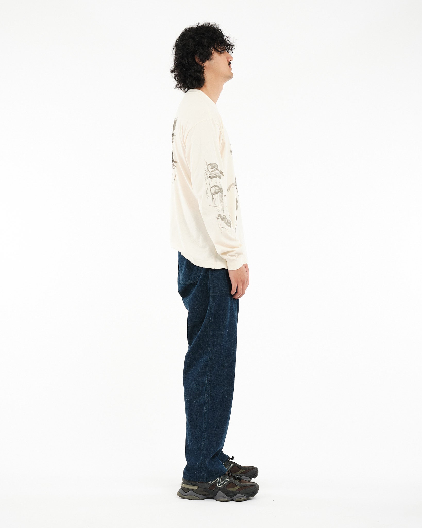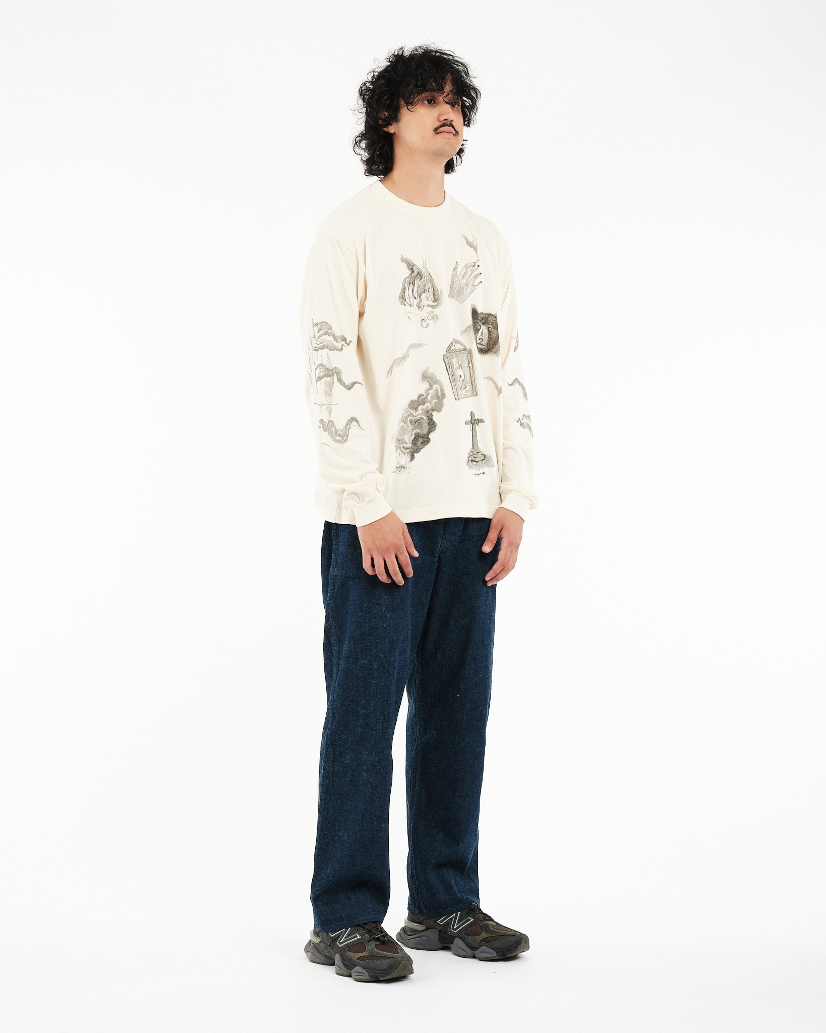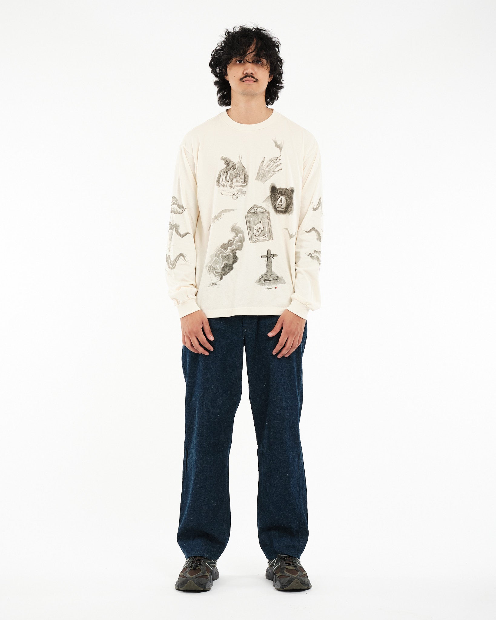 Appréciez la créativité de la Nudie Jeans Co. Rudi Doodle Off White T-shirt présentant des designs originaux de l'artiste Jeff Olsson de Göteborg. Fabriqué à partir de coton biologique Ce t-shir à manche à manches longues propose une collection captivante de griffonnages au crayon chacun une petite œuvre d'art reflétant les olssons touche distinctive de mélancolie et de profondeur. L'expression suédoise "Leave Me Alone" est élégamment affichée à l'arrière en ajoutant un flair, à la conception. La texture des chemises est enrichie par le tricot et la légère flou du fil tourné en anneau avec des points de haut gris contrastés qui mettent en évidence son charme artistique.