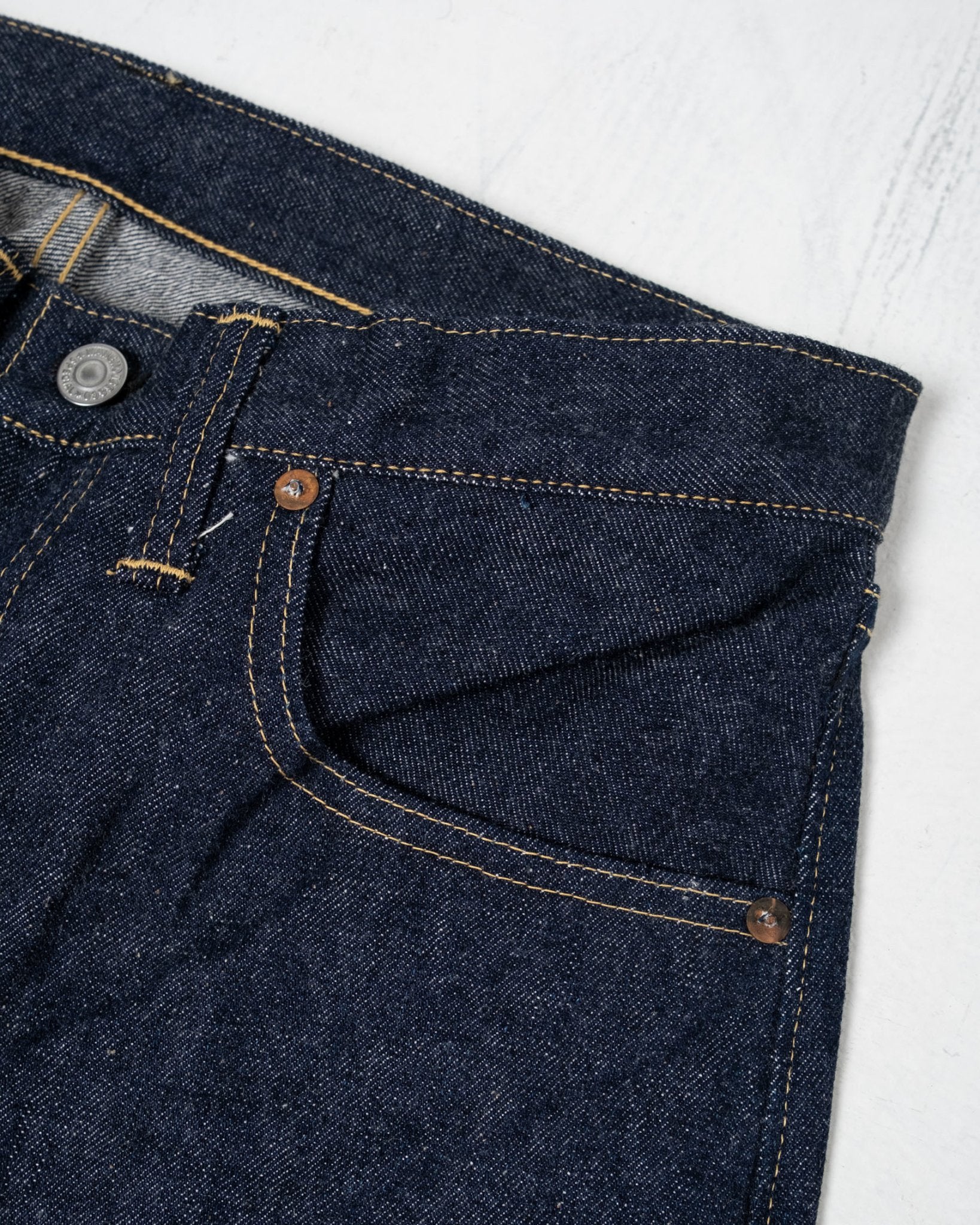 S1000XX MORT SCOCK BLUE Rétroche pour s'adapter à partir de Warehouse & Co. Ici C.Éliant à leur 25e anniversaire avec une version limite de leur jean emblématique Straight Fit 1000xx. En utilisant des technologies originales et personnalisées accumulées depuis plus de 25 ans, ils ont produit le modèle de réduction du lot S1000XX pour ajuster le modèle. Tout, des étiquettes en cuir, des boutons, des rivets, des fils de couture et même la configuration de la machine à coudre requise pour la couture. Le denim en stock mort de l'ère "WW2" est reproduit à partir du nombre de threads tel qu'il était à l'origine. Ils ont réussi à reproduire non seulement le nombre de threads mais aussi la teinture de la corde de l'indigo. Une paire de pantalons en jean vraiment unique. Fait au Japon.