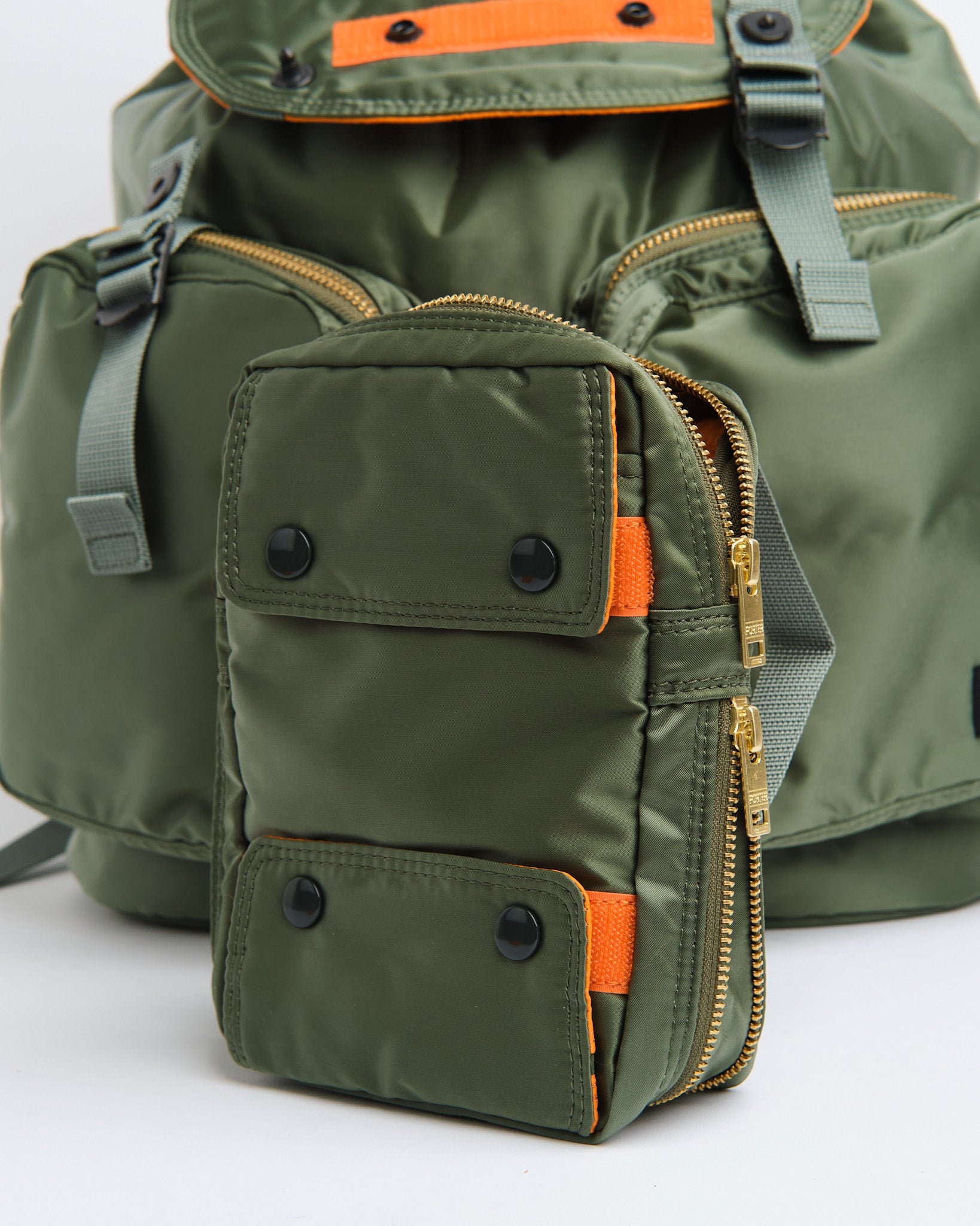 Le sac de ruck Porter by Yoshida Tanker dans Sage Green est un accessoire incontournable pour tous ceux qui valent le style, la fonctionnalité et la qualité. Fabriqué au Japon dans le cadre de l'emblématique série "Sanoner", ce sac Ruck présente un tissu original inspiré de la veste de vol de l'Air Force "MA-1".