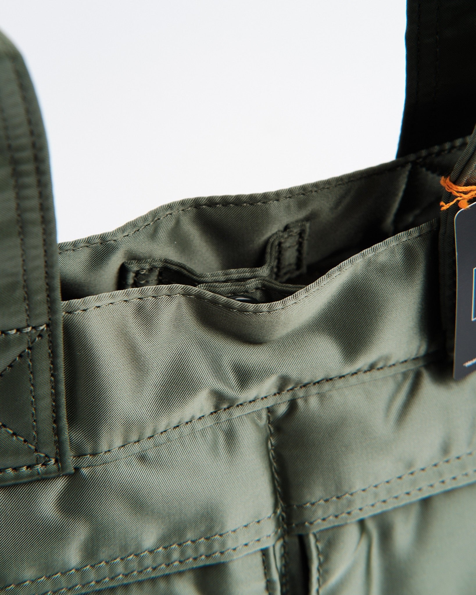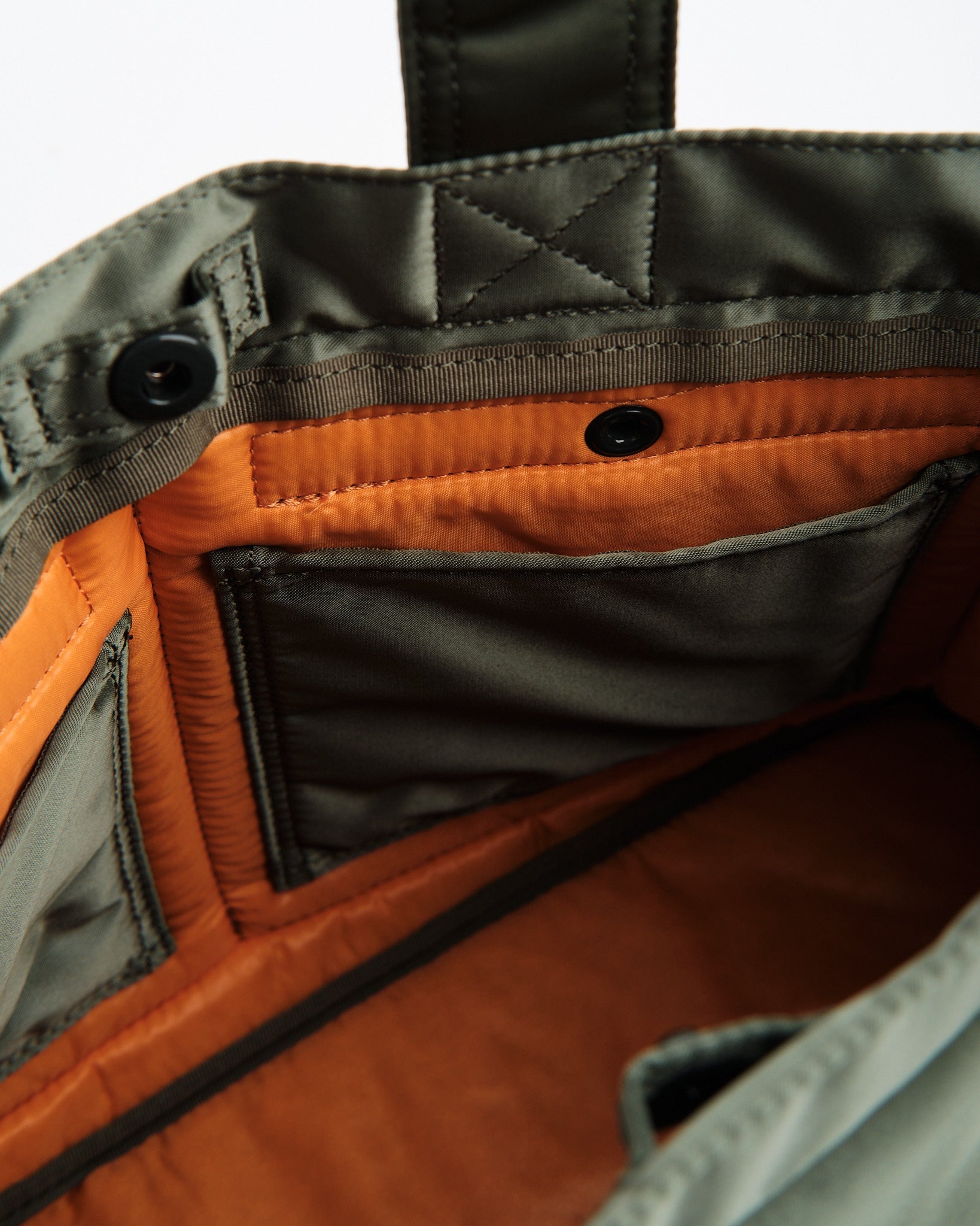 Découvrez le Porter Yoshida 622 76995 30 Sac fourre-ci dans une teinte verte sage. Ce fourre-tout fait partie de la série de pétroliers qui a fait ses débuts en 1983 s'inspirant de la veste de vol de l'Air Force américaine Ma 1. Fabriquée avec un mélange de trois couches de coton en polyester en nylon et de taffeta en nylon, ce sac est léger mais robuste. La doublure orange de sauvetage vibrante ajoute une touche de couleur. Arborant un design horizontal avec deux poches avant de style pétrolier, il est idéal pour transporter les incontournables comme une bouteille d'eau de 500 ml ou une boîte à lunch. Mesurer w; 340 mm, H; 240 mm, D; 130 mm (w; 13,4 pouces h; 9,4 pouces D Fabriqué à la main, au Japon, ce sac met en valeur Yoshida & Co.s attention aux détails.