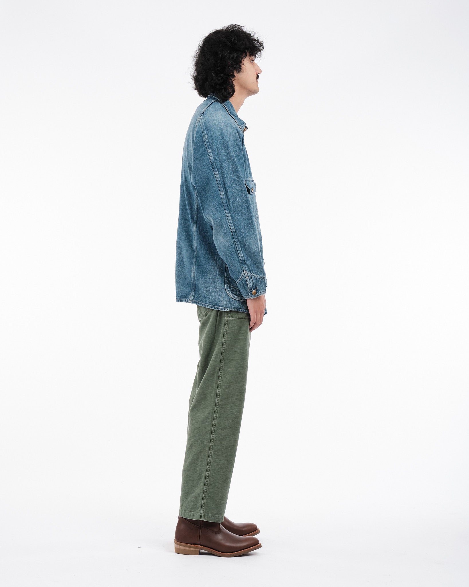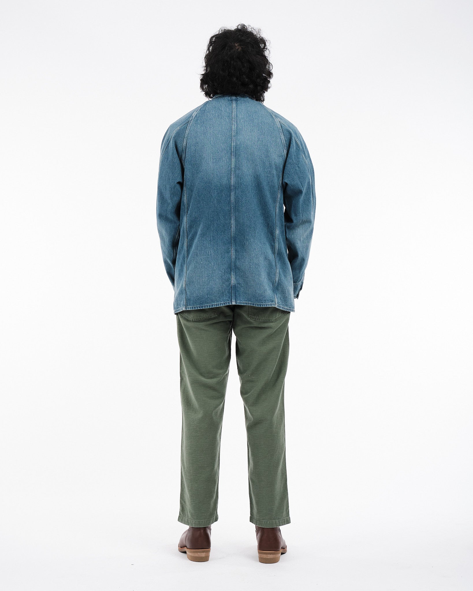 La orSlow combinaison des années 1950 en Denim Used Wash est un hommage au vêtement de travail américain classique du milieu du 20e siècle. Fabriquée au Japon à partir de denim selvedge original de 9oz, cette combinaison est conçue pour offrir durabilité et confort. La finition lavée usée crée une sensation douce et vécue, tandis que la coupe décontractée et les manches raglan assurent une liberté de mouvement. Les détails fonctionnels incluent de multiples poches pour l'utilité, des boutons en laiton personnalisés, et des coutures triples pour une usure durable. Avec son inspiration vintage et son artisanat impeccable, cette combinaison est une pièce polyvalente parfaite pour superposer ou porter seule.
