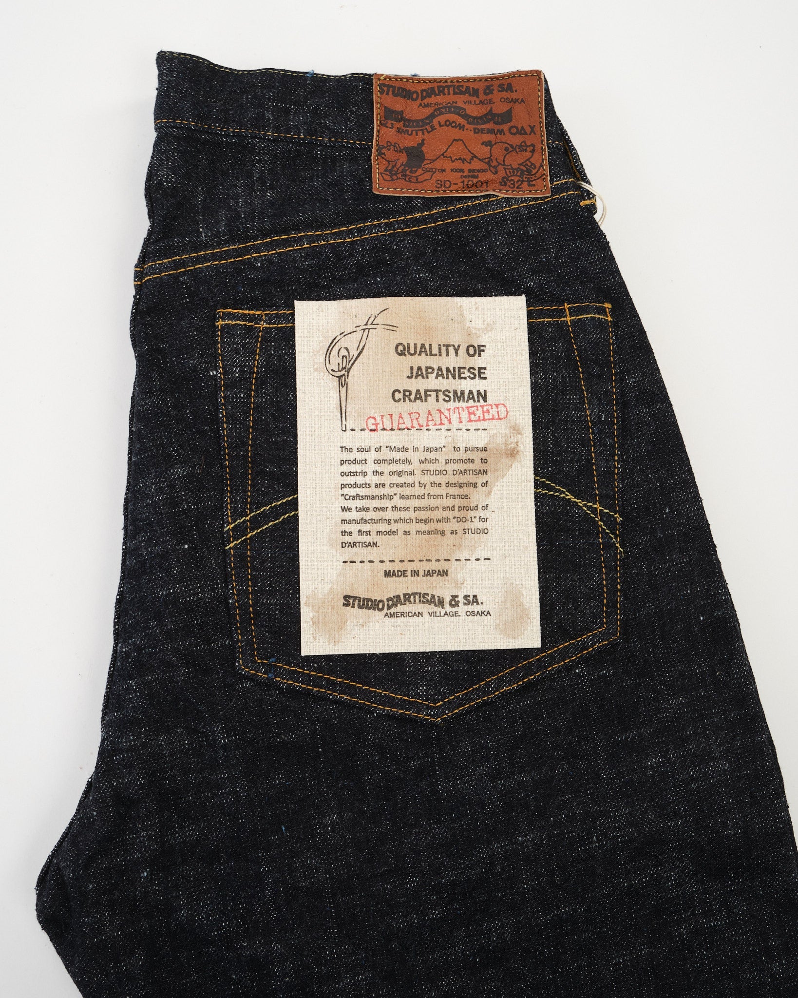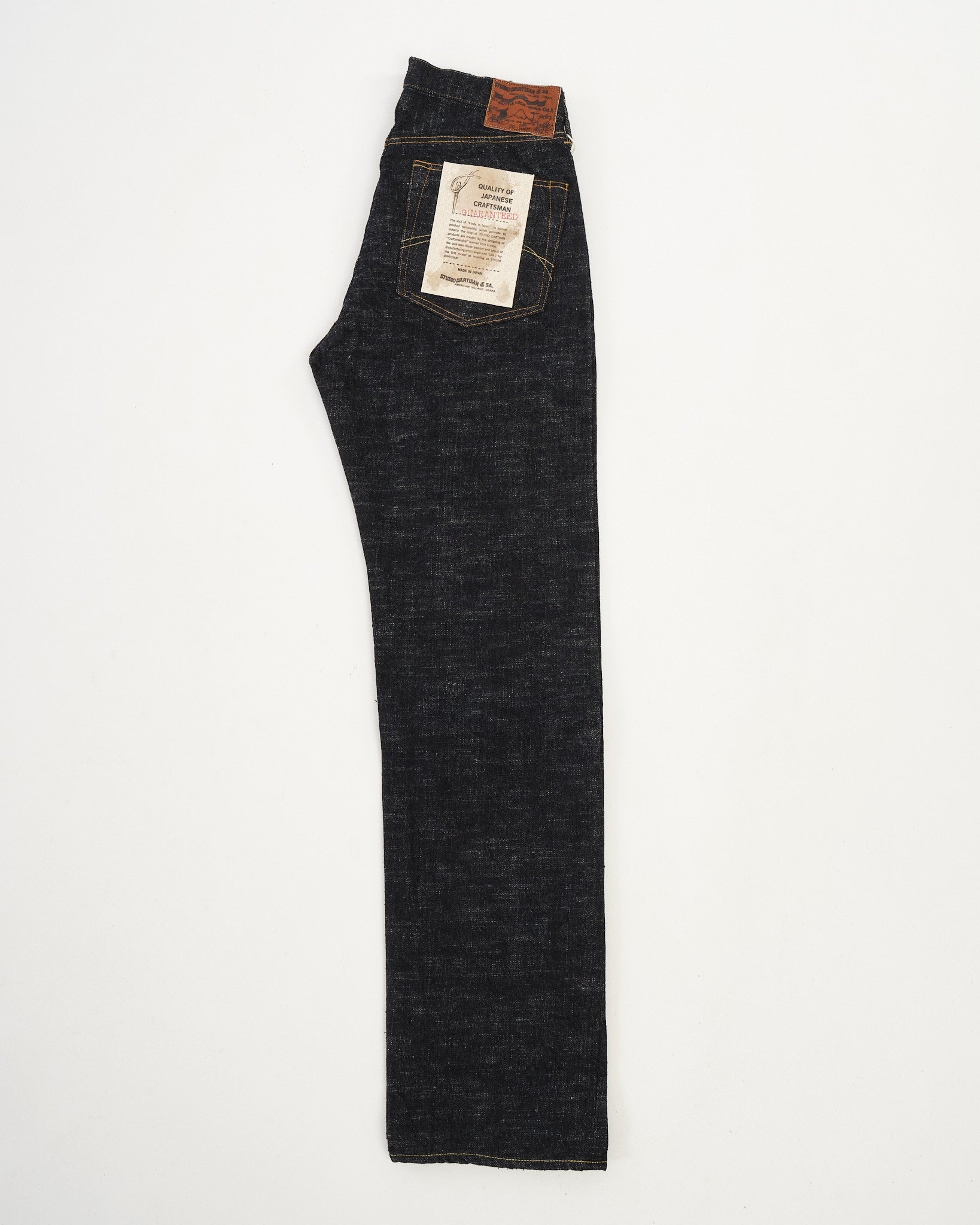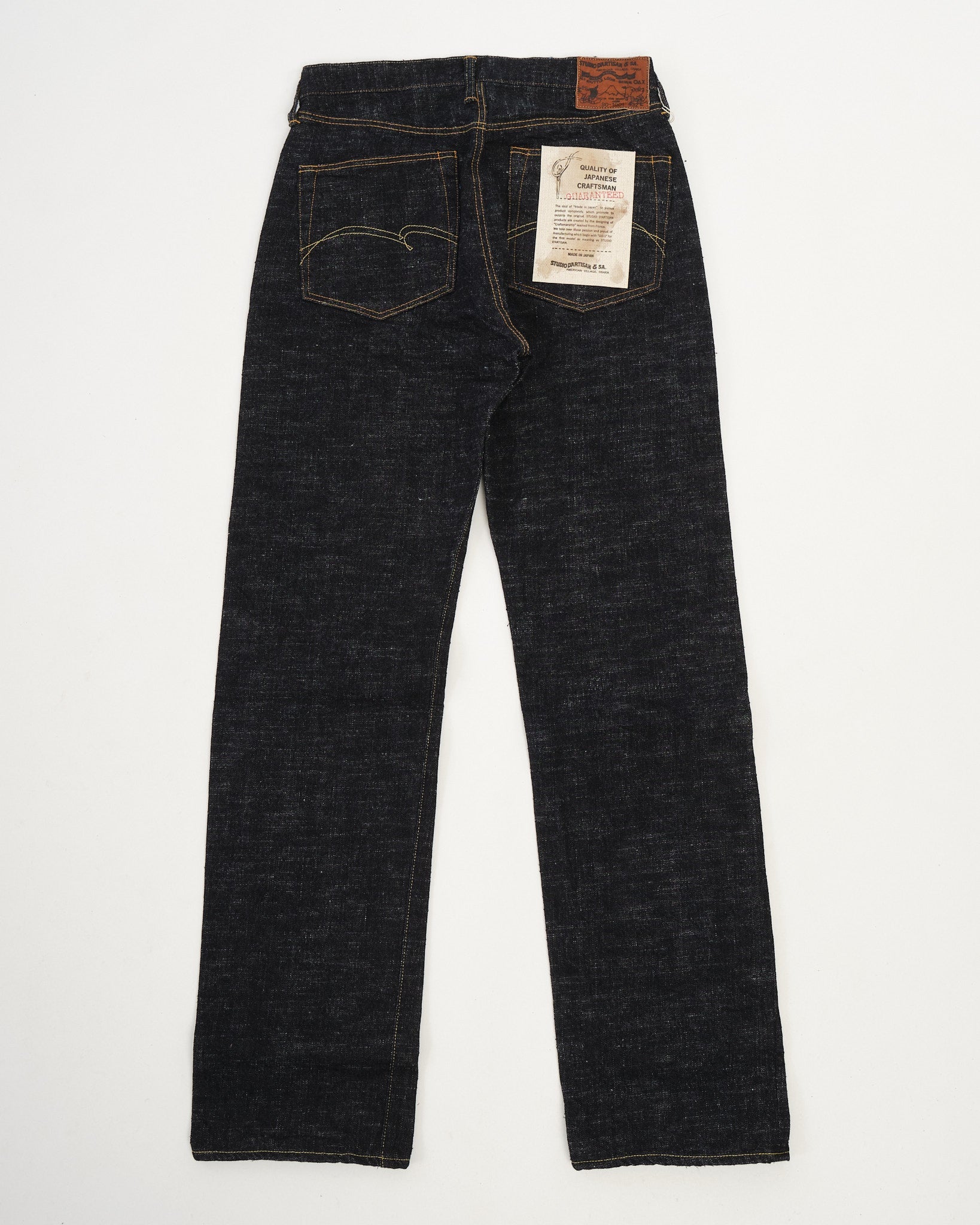 Le SD-1001 GL3 Jeans droits réguliers par Studio D'Artisan représentent une fusion de l'artisanat traditionnel et de l'expertise en denim moderne. Conçu pour embrasser pleinement les caractéristiques uniques de GL3 Selvedge Denim, ces jeans sont tissés Toyoda GL3 Looms de la navette, résultant en un tissu robuste et texturé qui les distingue du denim produit en masse.
