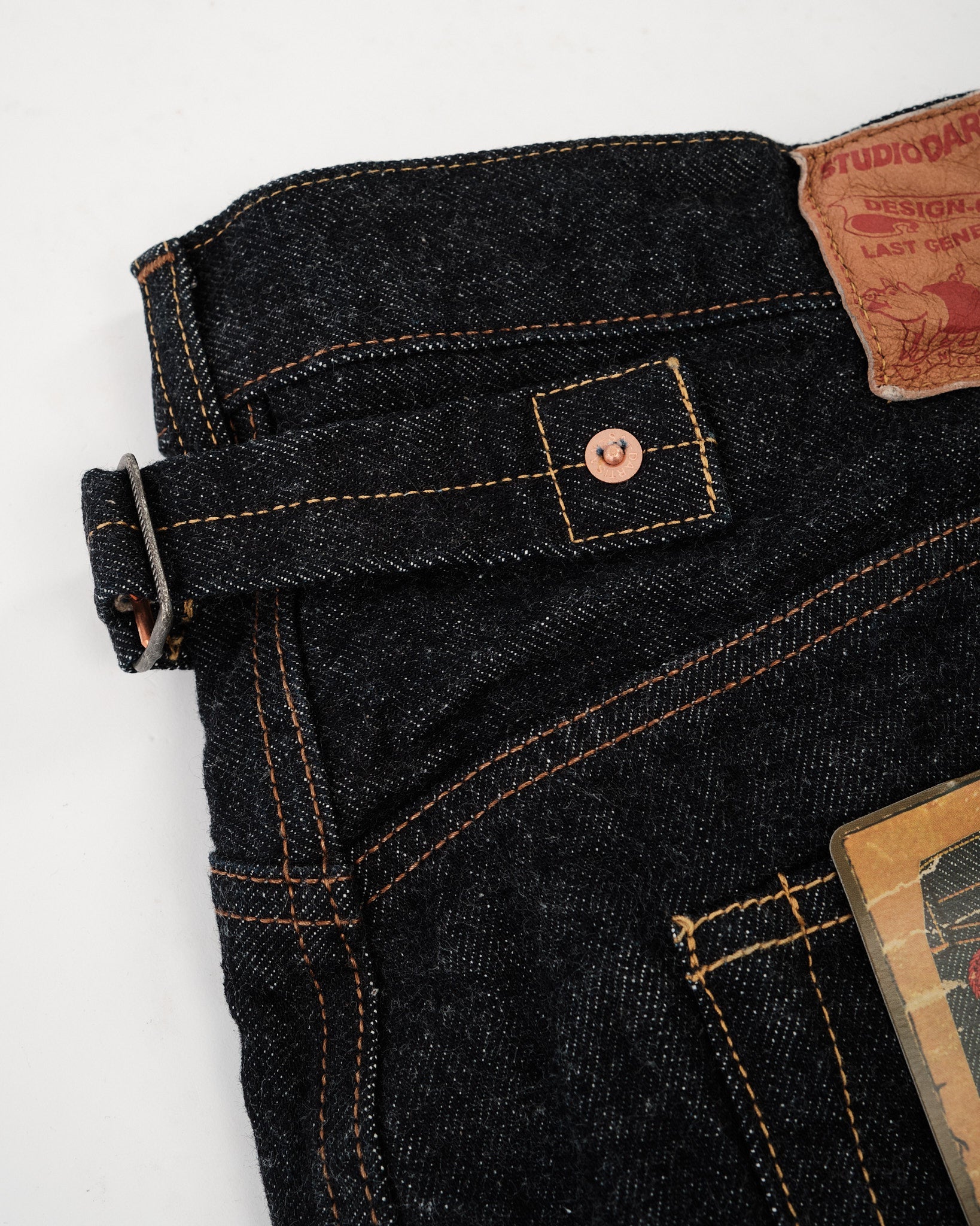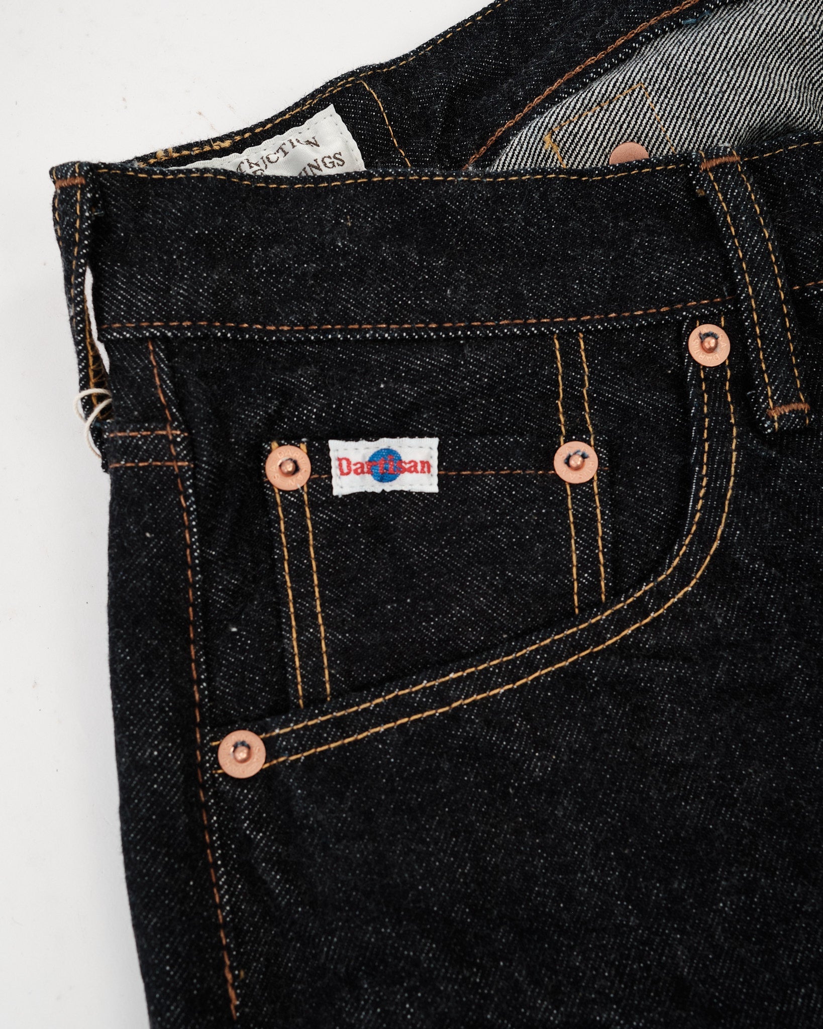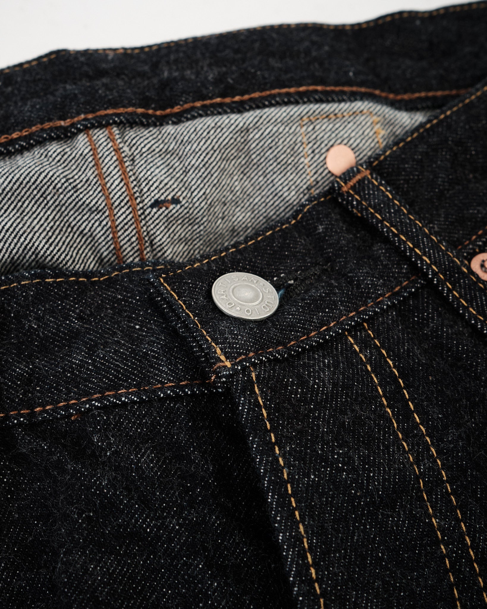 Le colorant indigo profond assure une couleur riche qui révèle progressivement des moustaches et des plis prononcées avec l'usure. En raison du manque de traitements modernes à l'épreuve du rétrécissement, attendez-vous à un retrait naturel et à une torsion après le lavage, en émulant les caractéristiques des jeans vintage des années 1950.