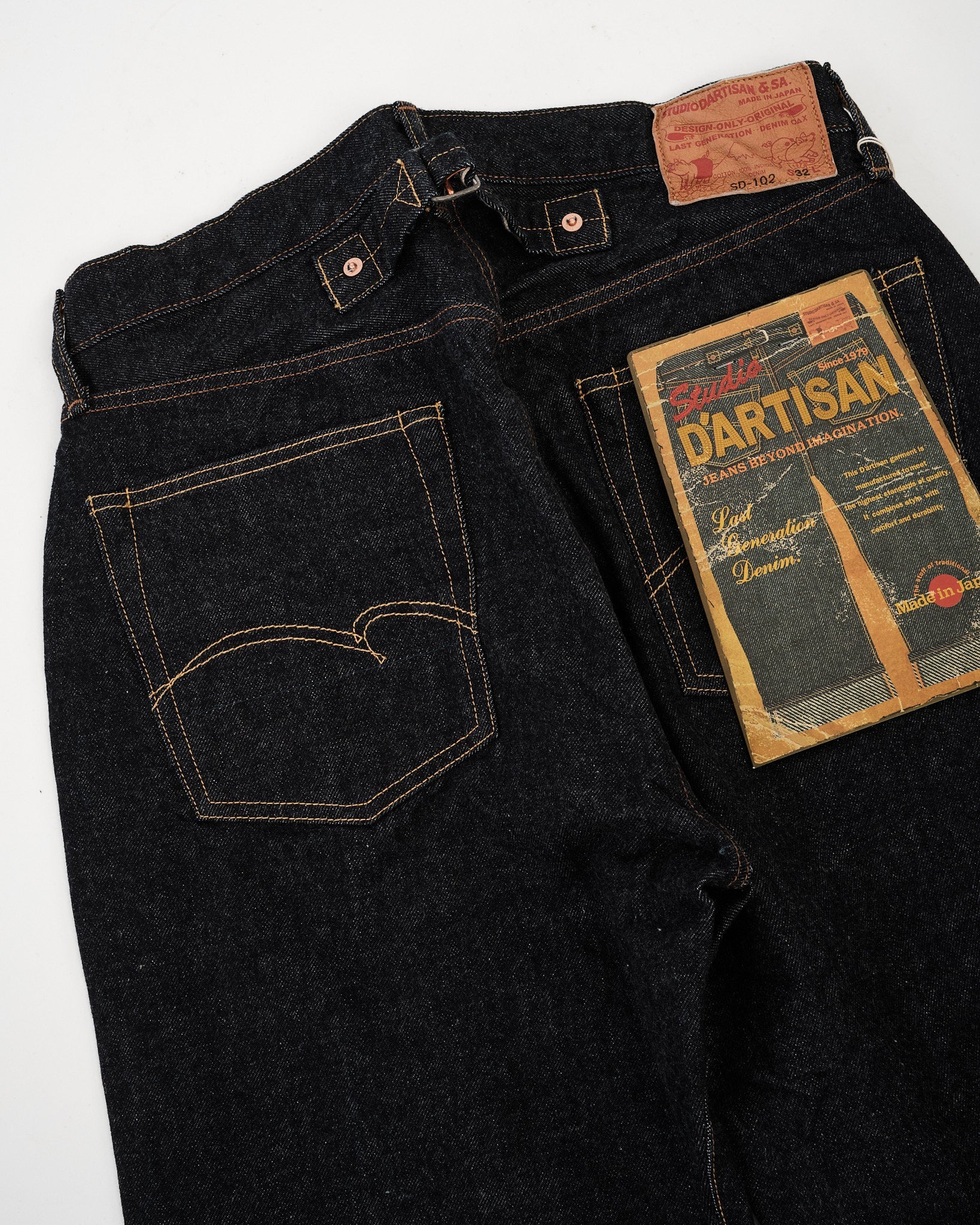 Le Studio D'Artisan SD-102CB de larges de larges (SD-102CB) rendre hommage aux vêtements de travail traditionnels avec leur silhouette droite détendue et lâche. Fabriqué à partir de 15 oz de denim lisière non ancré tissé sur des métiers à la navette vintage, ces jeans possèdent un tissu robuste et durable qui développe des fonds uniques au fil du temps.