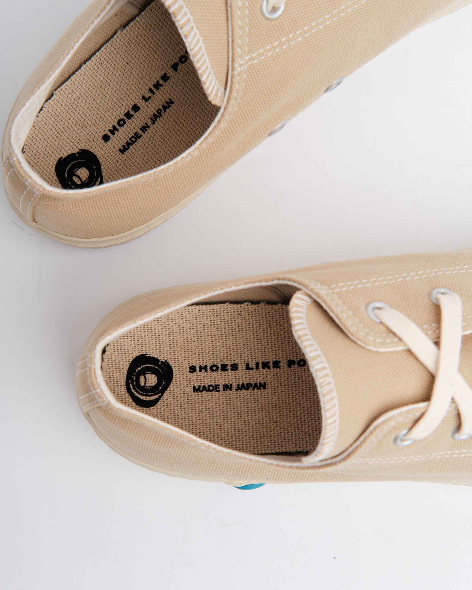 Le Des chaussures comme la poterie SLP01 JP dans Beige incarner Artisanat japonais et simplicité intemporelle. Chaque paire est fabriqué à la main au Japon et subit l'unique Processus de feu de four «ka-ryu», assurant un Semelle durable et flexible qui se moule à votre pied au fil du temps. Le 100% coton supérieur Dans une teinte beige chaude offre un look polyvalent et discret, tandis que le Semelle en caoutchouc bleu signature met en évidence sa qualité artisanale. Avec un Silhouette bas et détails raffinés, ces baskets sont conçues pour le confort quotidien et le style sans effort.