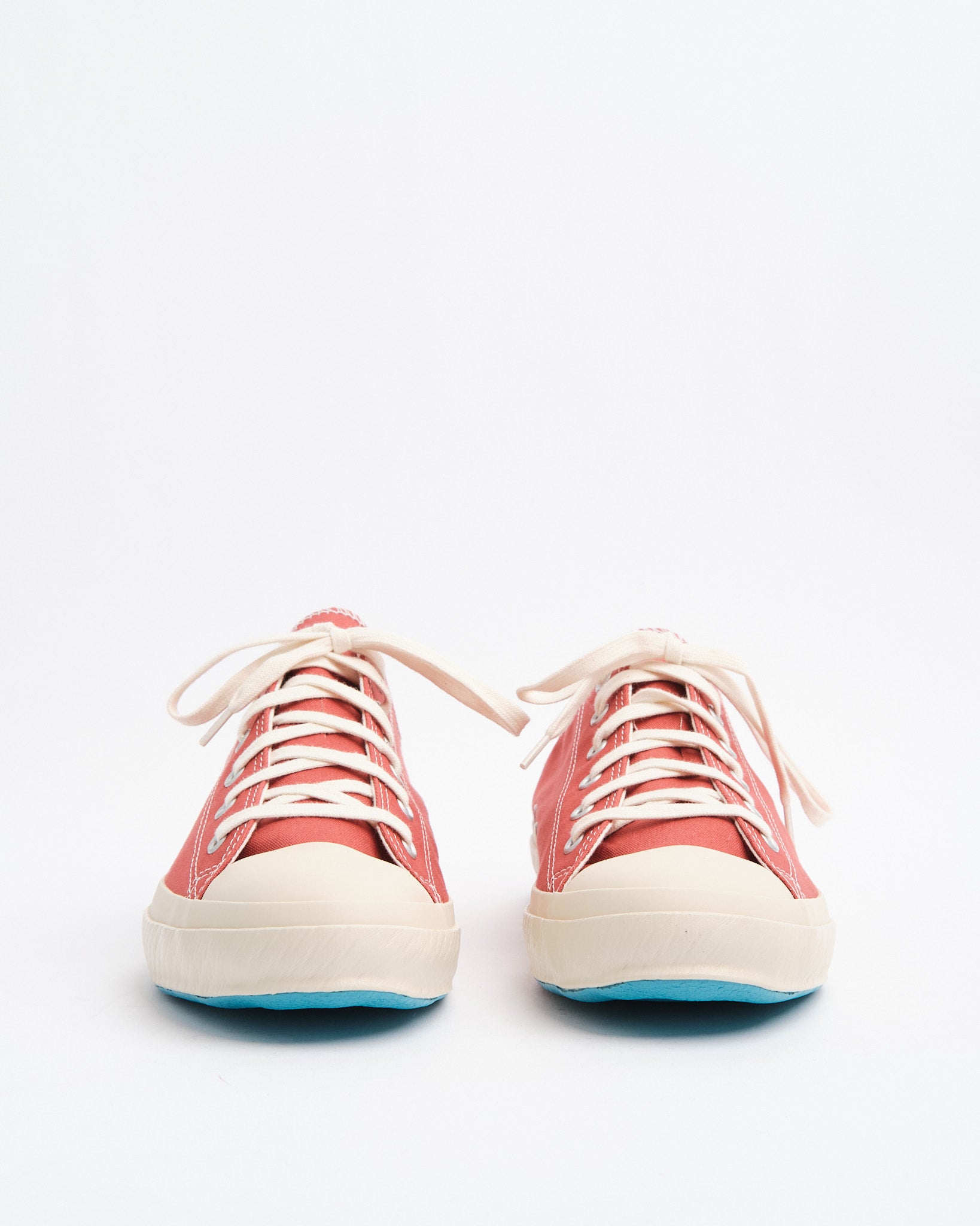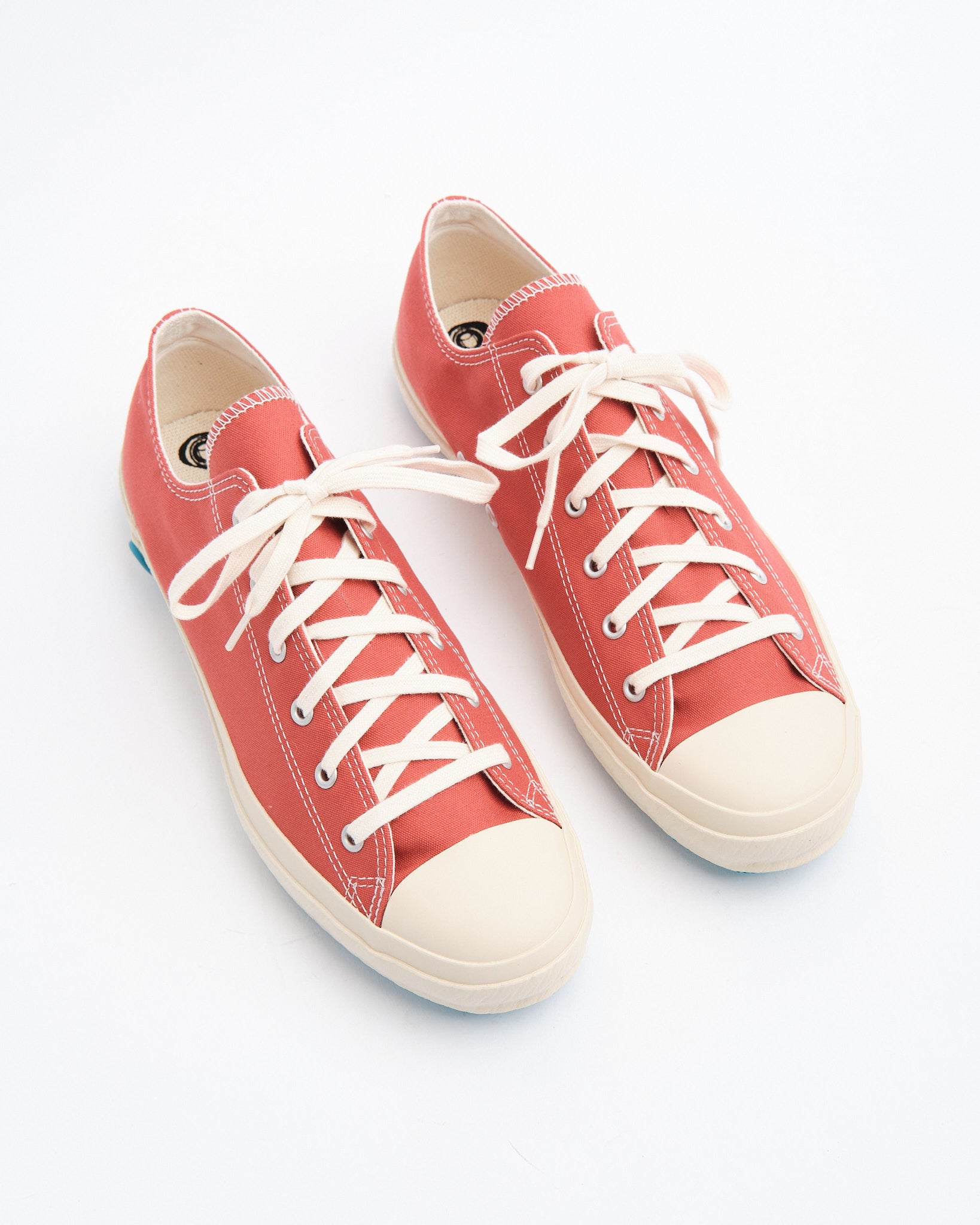 The deep JP Red canvas upper is woven in Japan and paired with a clean white rubber sole for a sharp, heritage-inspired contrast. The result is a timeless low-top silhouette that feels authentic rather than nostalgic. Subtle details like the hand-stamped blue heel logo and reinforced toe cap reflect the brand’s dedication to traditional production methods.