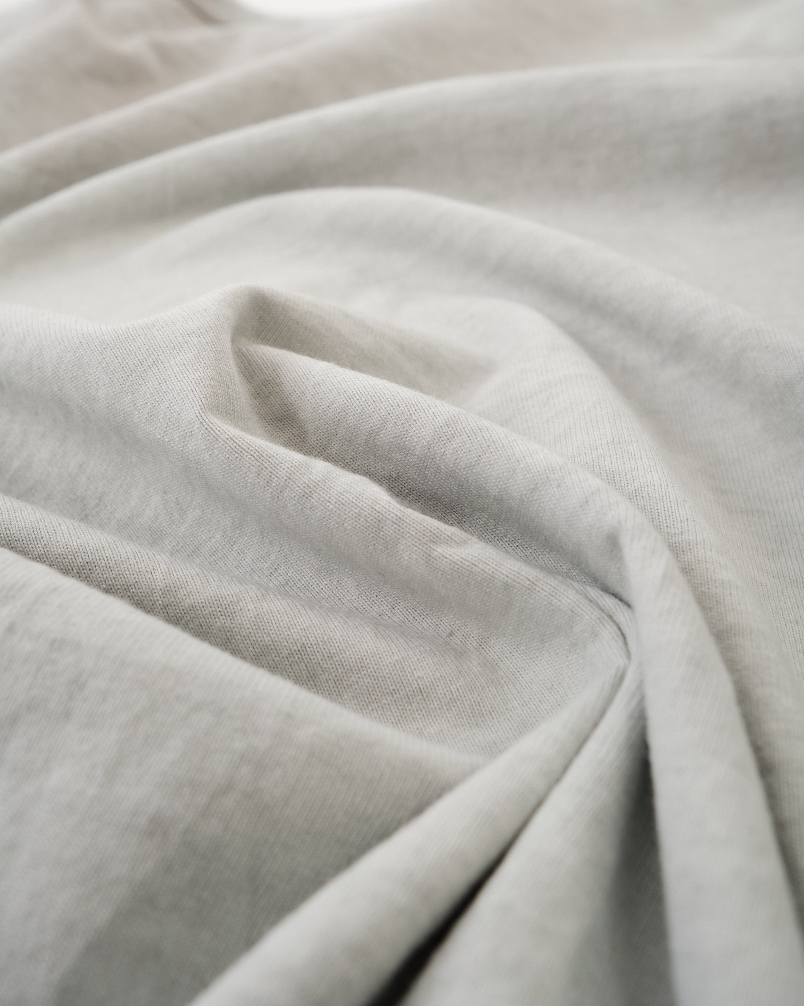 • Dense fabric knit on a slow, high-gauge tubular machine