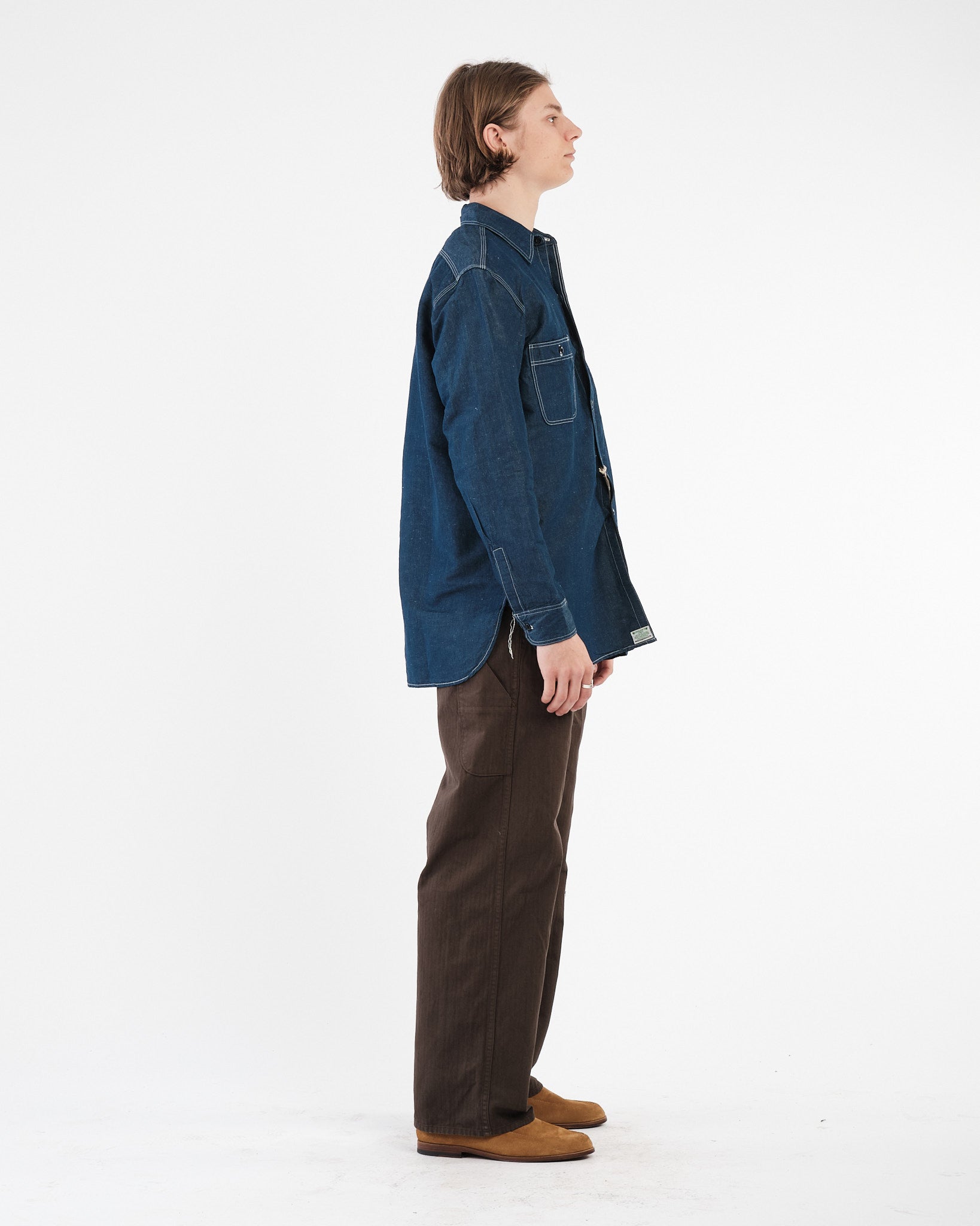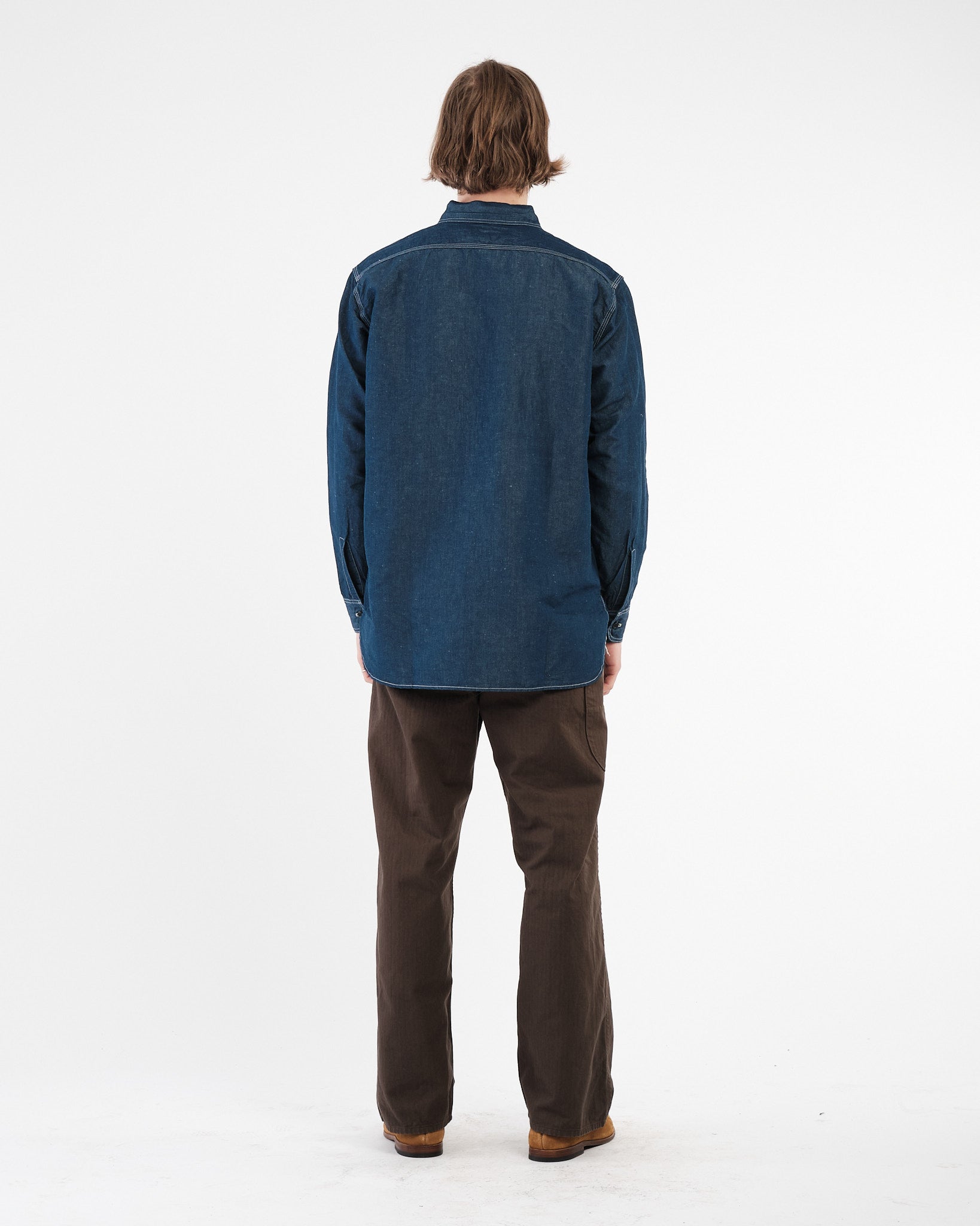 Fabriqué à la main au Japon, cette chemise de travail illustre le dévouement d'Orslow à l'artisanat méticuleux, assurer la durabilité et la qualité au fil du temps.
