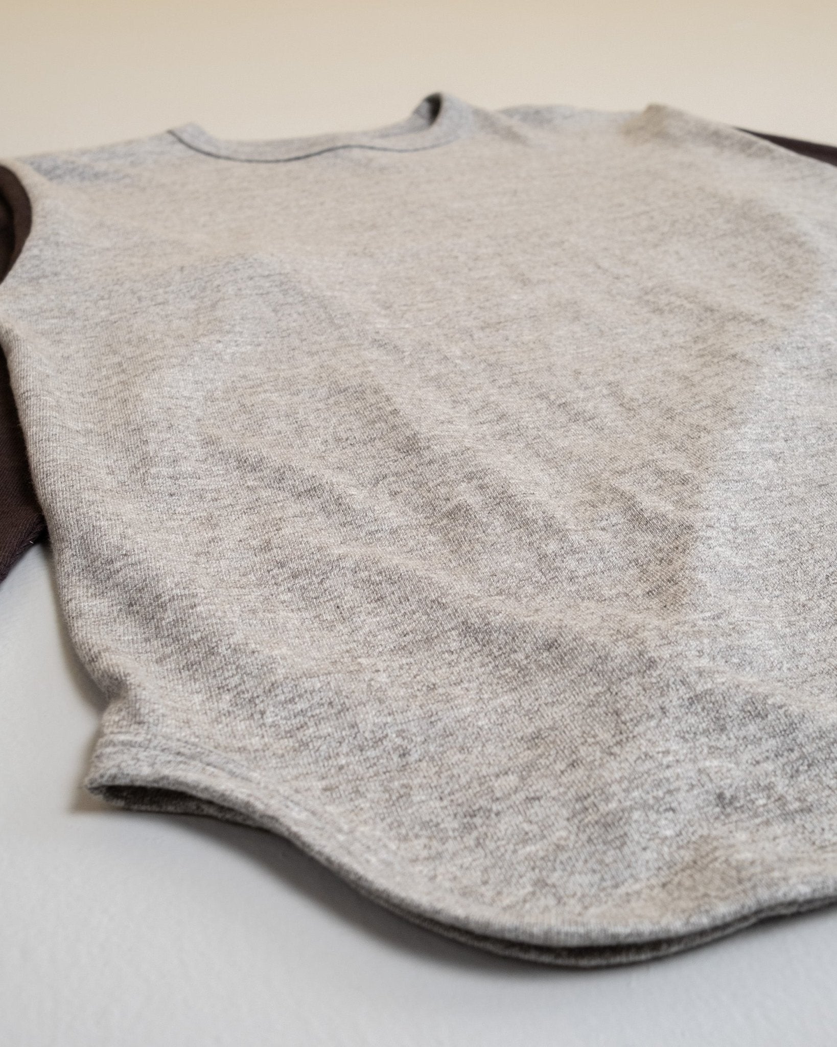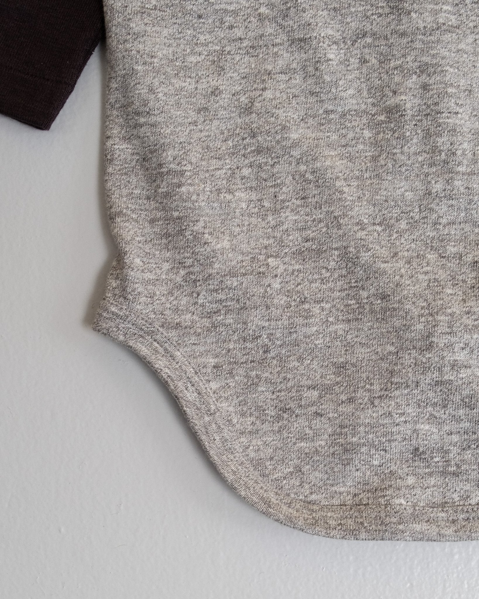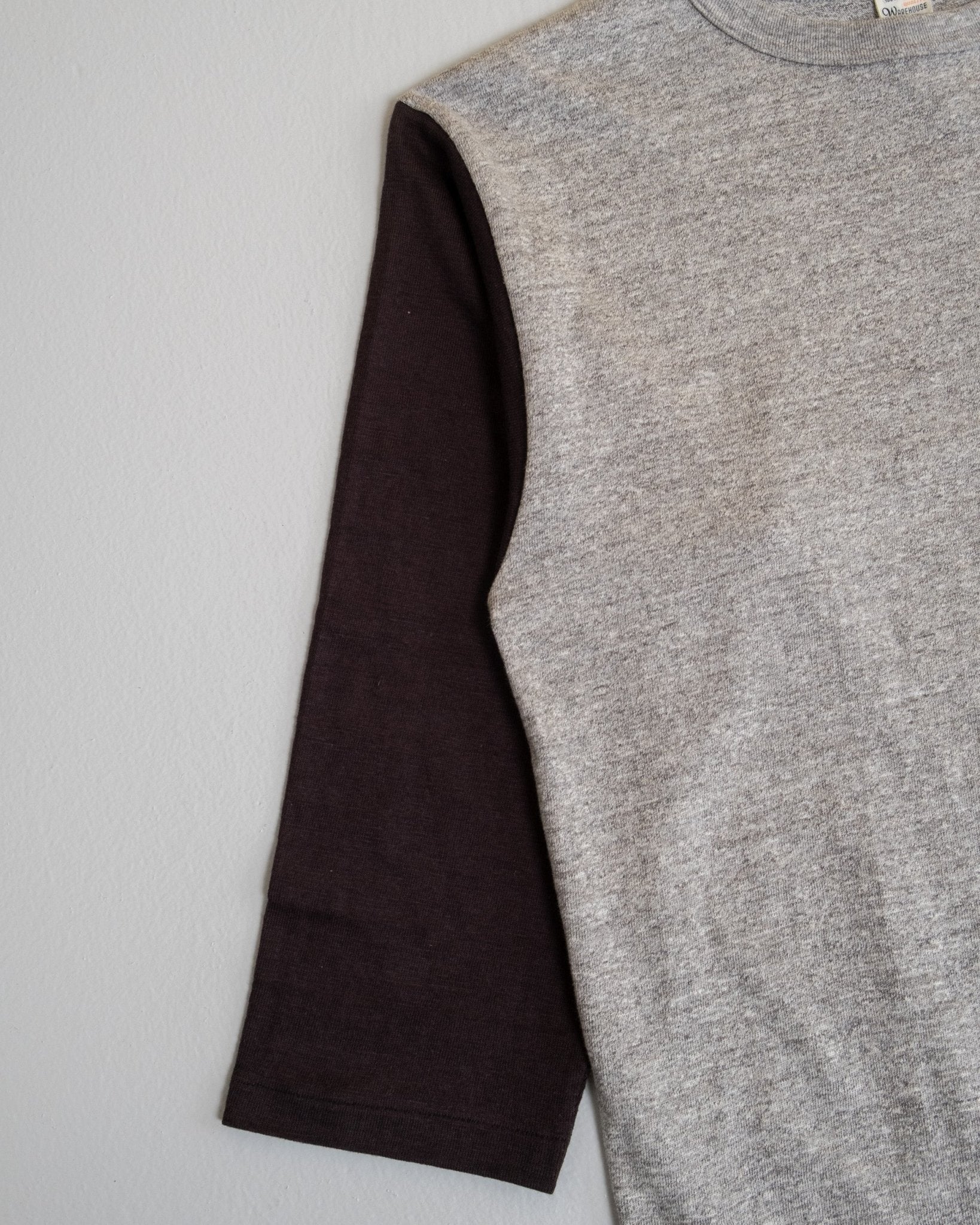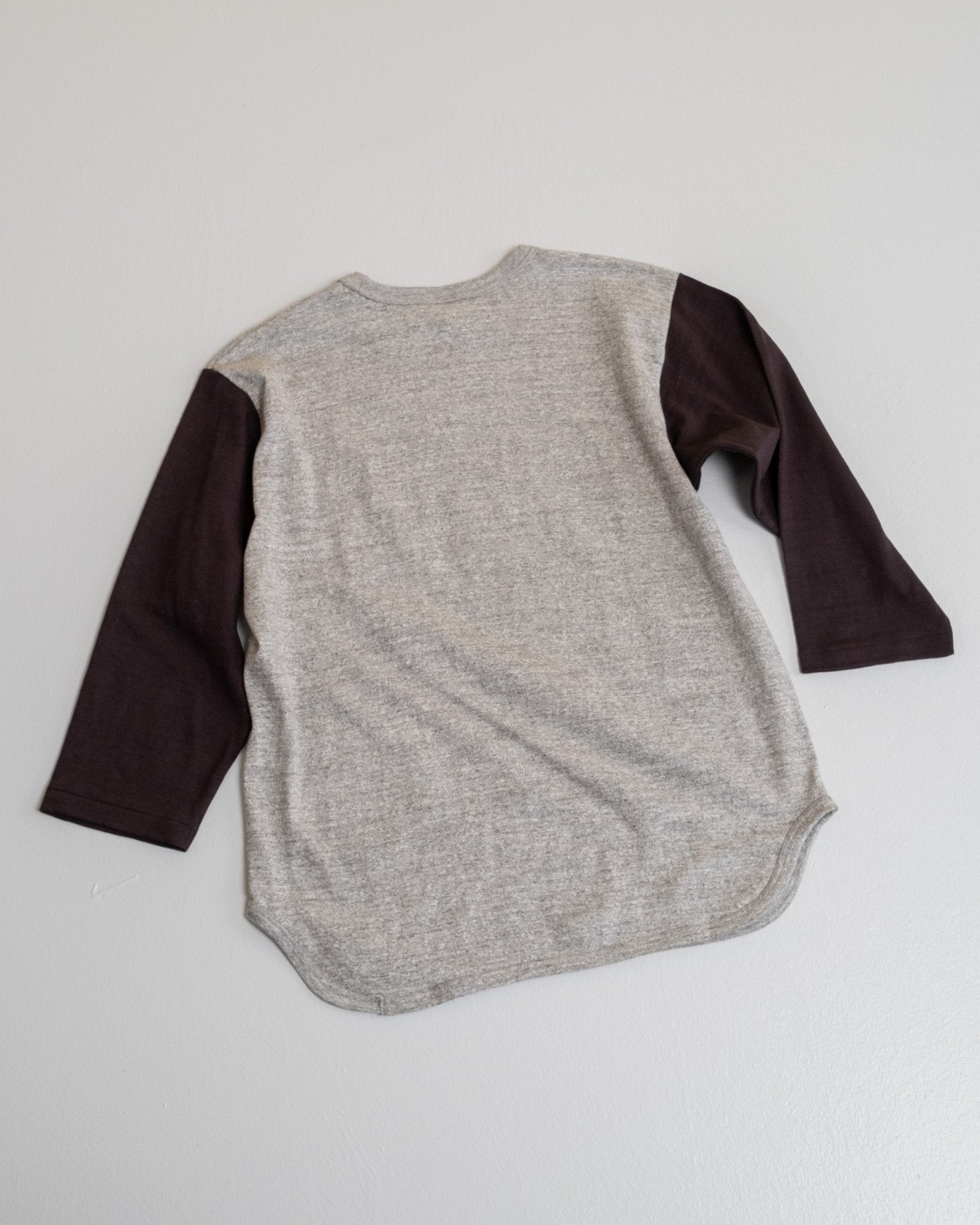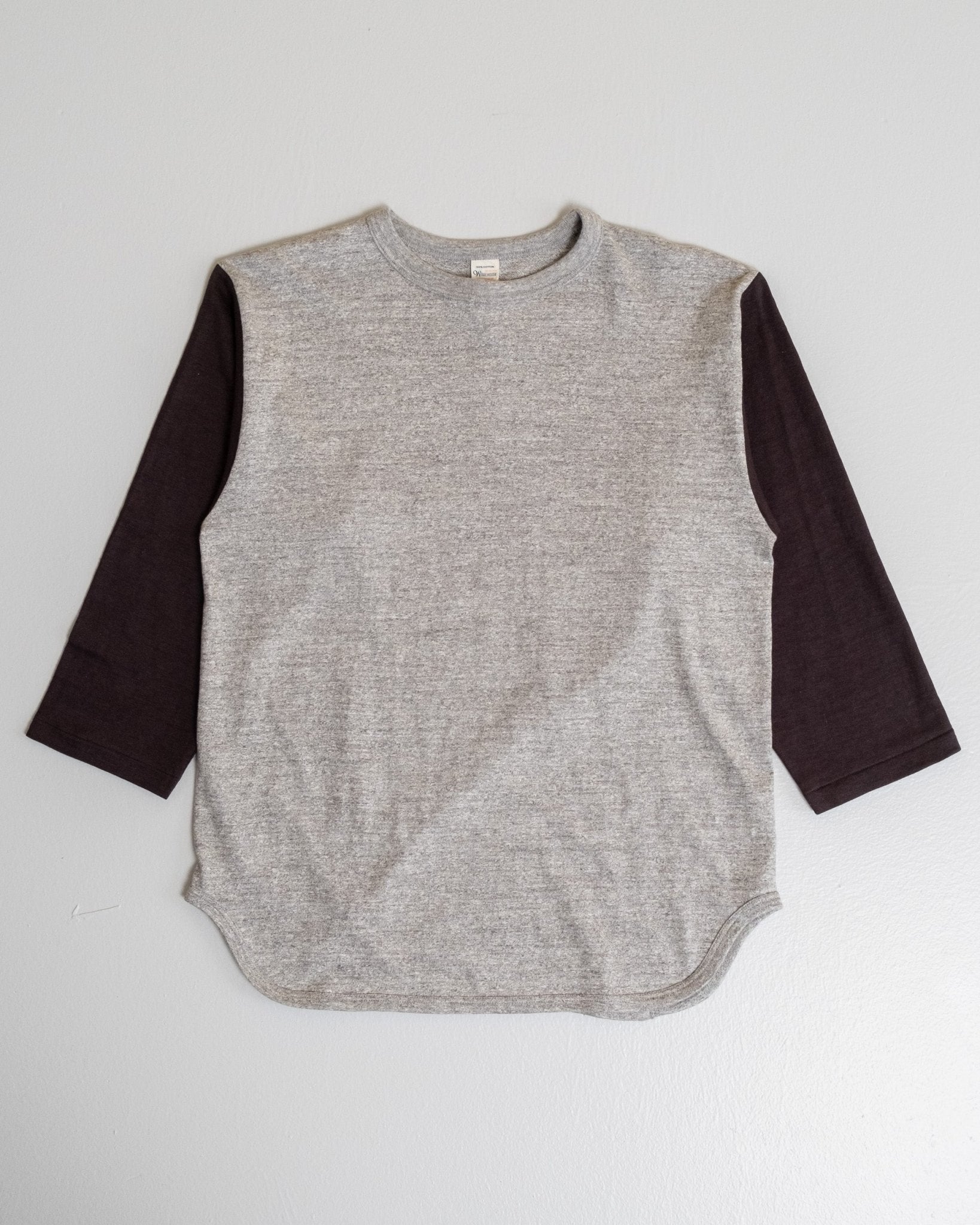 4800 T-shirt de baseball en trois quarts Heather Gray / Sumikuro de Warehouse & Co. T-shirt en coton super doux et confortable avec manches de 3/4 longueur. Trièce tubulaire, ce qui signifie qu'il n'y a pas de coutures latérales pour plus de confort. Les manches couvertes de l'ourlet et du vêtement se décoloreront avec le temps. Fait au Japon.
