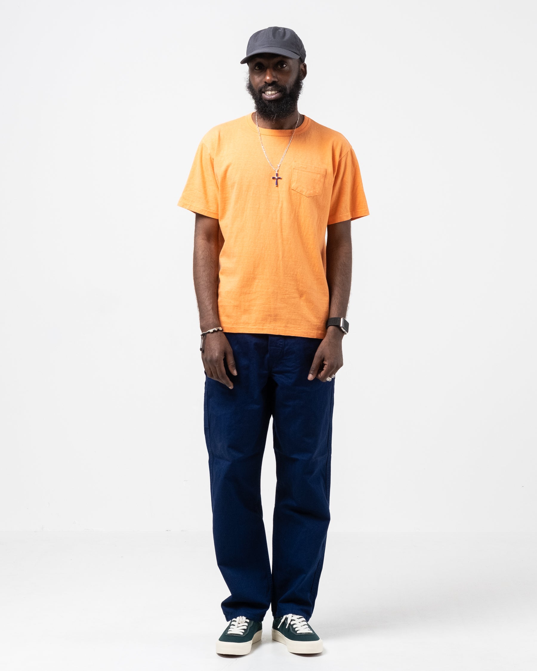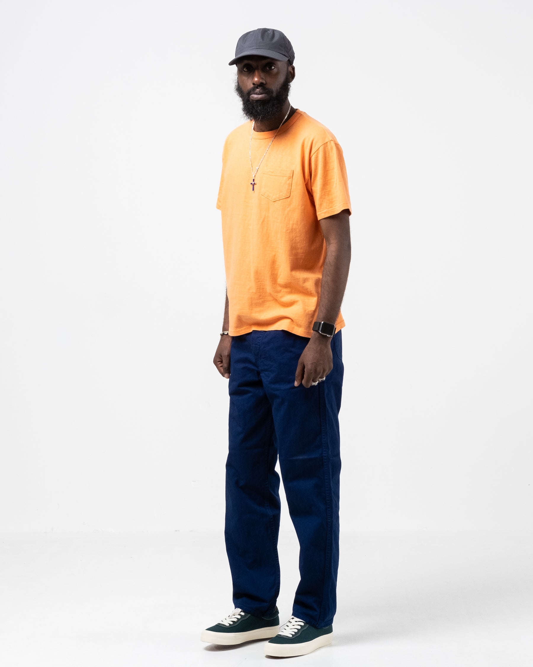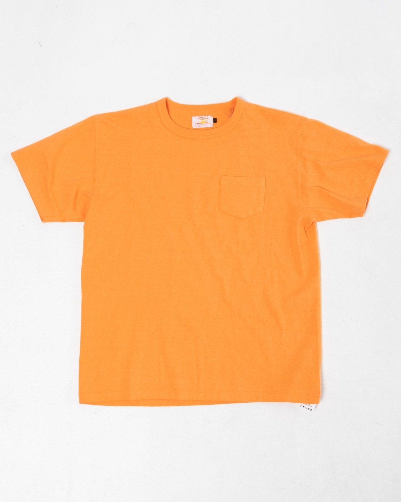 Hanalei T-shirt Persimmon Orange de Sunray Sportswear. Les t-shirts Sunray ont un ajustement traditionnel inspiré de la sensation des années 50. Détendu avec un ajustement régulier. Le collier, la conception des côtes et les tissus sont également traditionnels. Une poche de poitrine et 260 g. Fait au Japon.