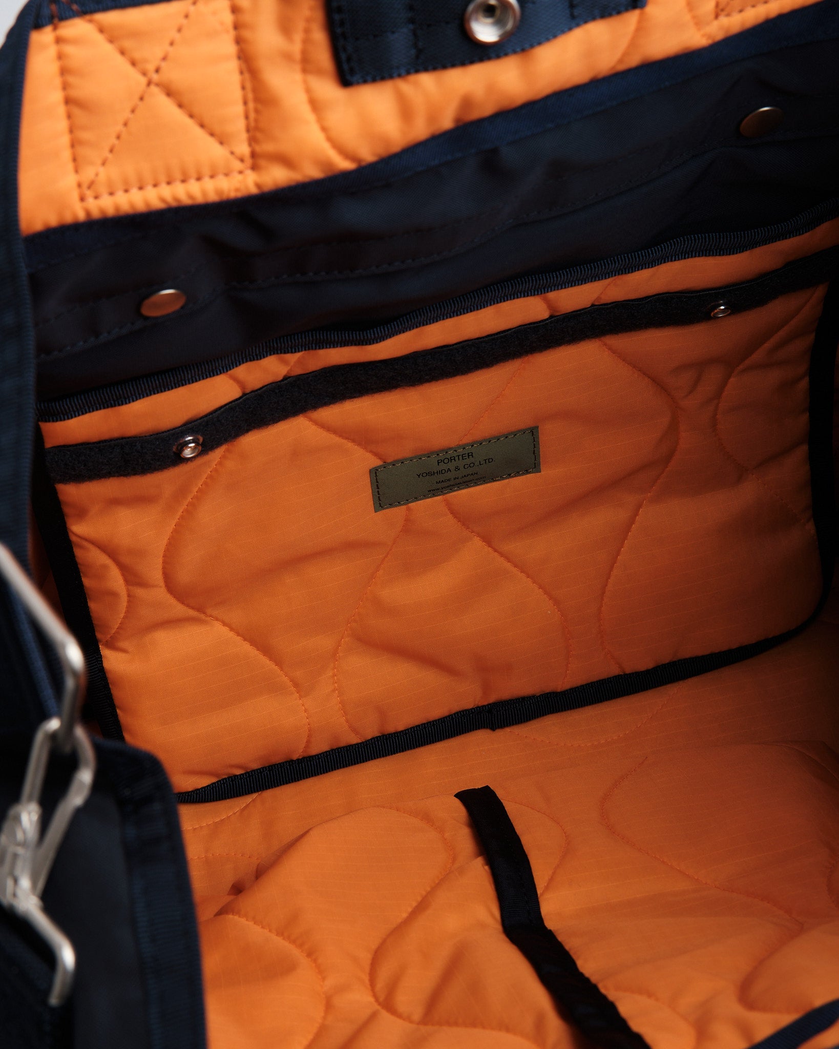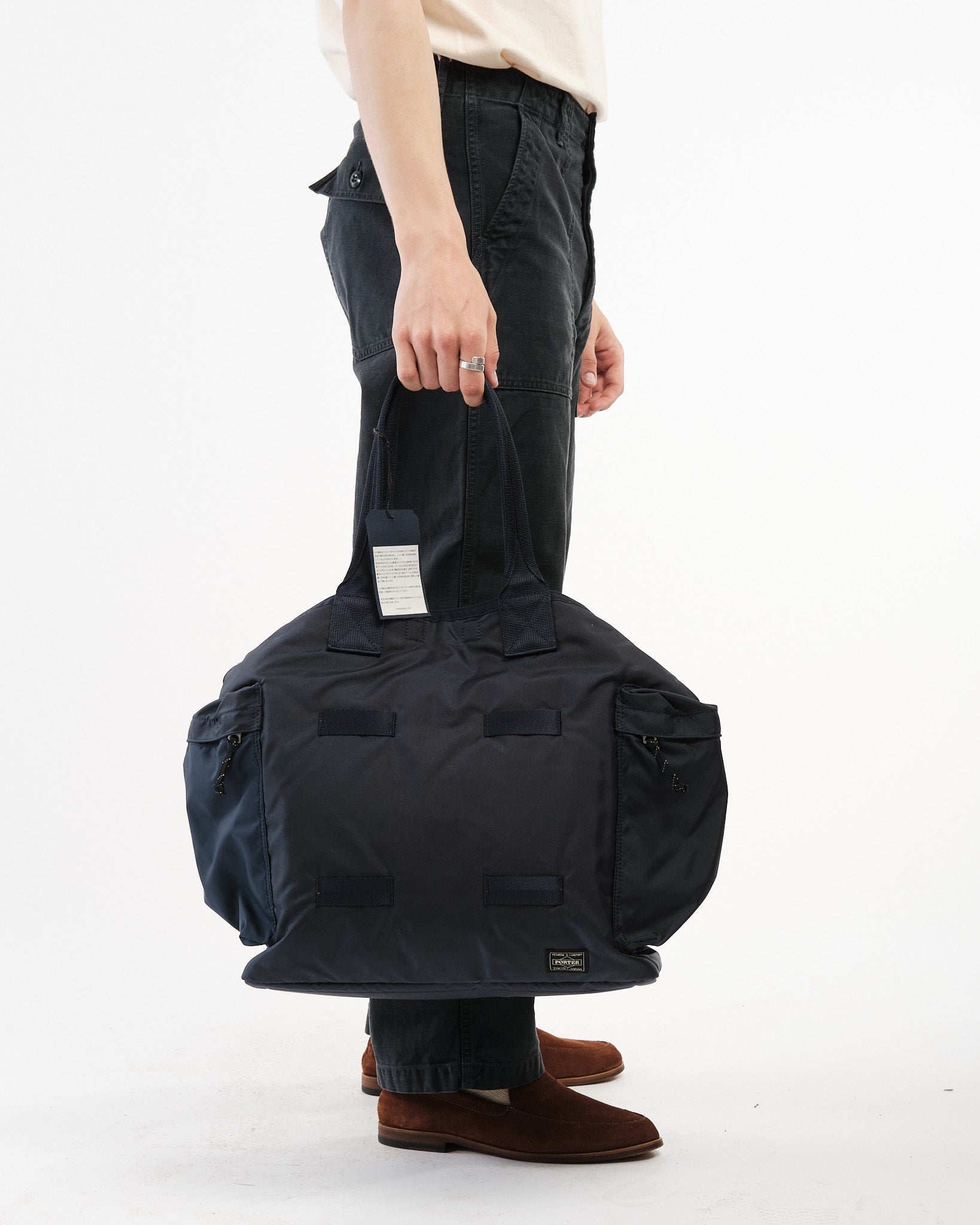Le Porter par Yoshida Force à 2 voies fourre-tout fait partie du Porteur Série, inspirée par l'esthétique militaire et les différences de couleurs accidentelles trouvées dans les biens militaires. Une caractéristique remarquable est la variation de couleur subtile entre le tissu de la poche avant et le corps principal du sac, créant l'impression d'utiliser différents lots de tissu. Cette série célèbre les schémas de couleurs irréguliers qui se produisent naturellement dans les vêtements et accessoires militaires.