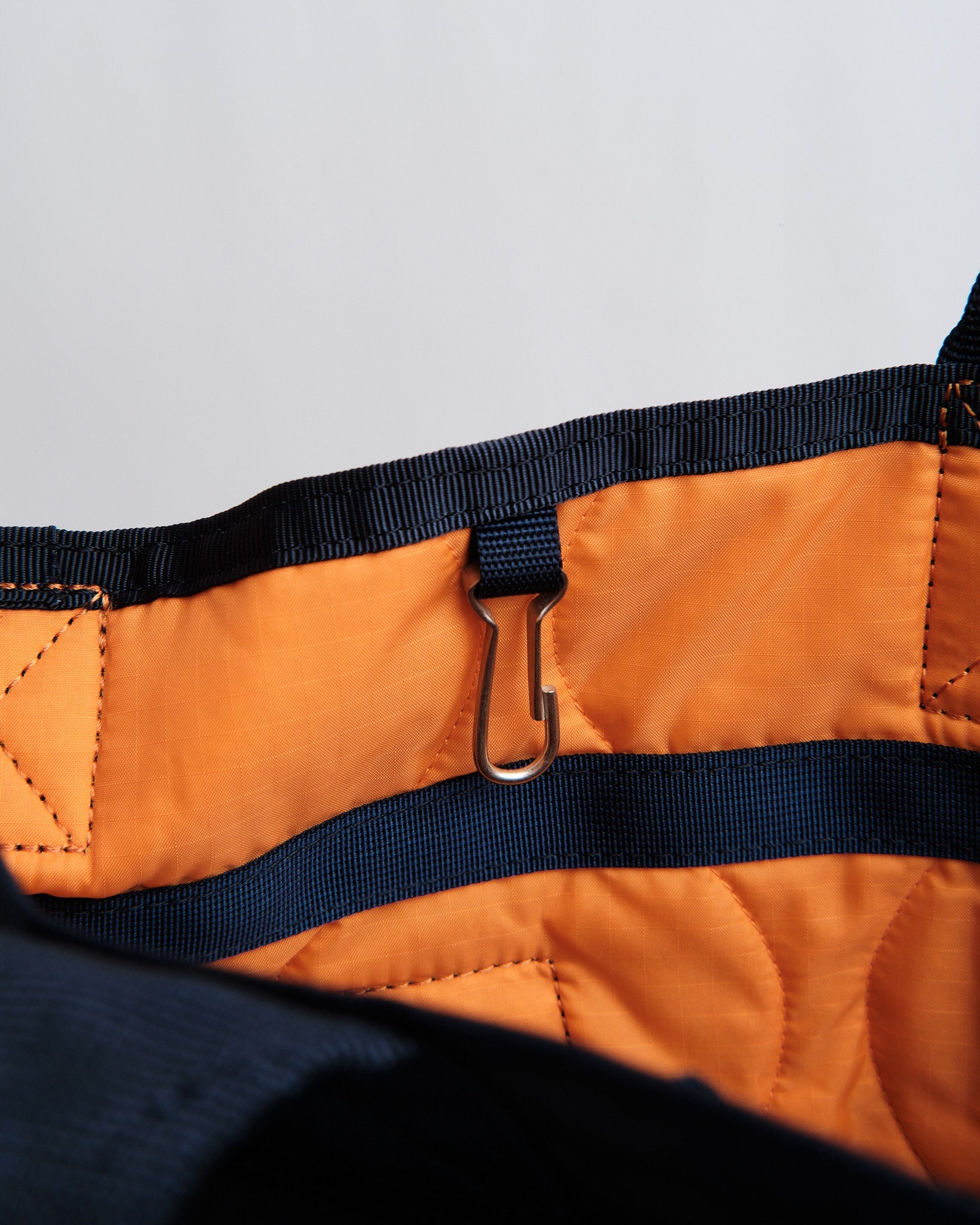 Fabriqué à partir de tissu de qualité industrielle tissé avec 210 Denier 6 Nylon Strong File, qui était à l'origine utilisé pour les bateaux en caoutchouc, ce sac offre une durabilité exceptionnelle. L'intérieur est bordé de Couleur d'urgence orange, inspiré par les vestes militaires et présente nylon ripstop pour plus de force.