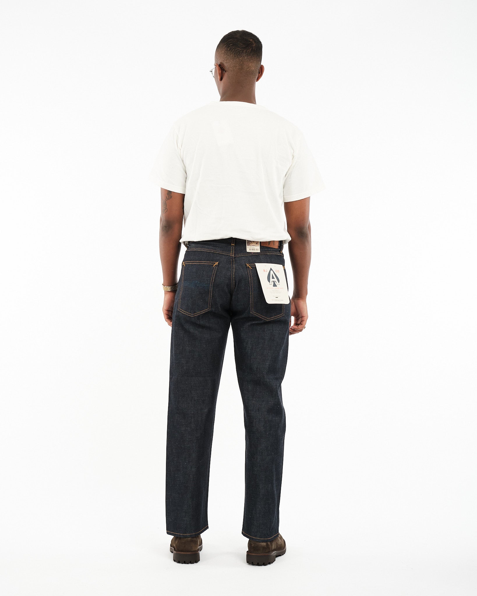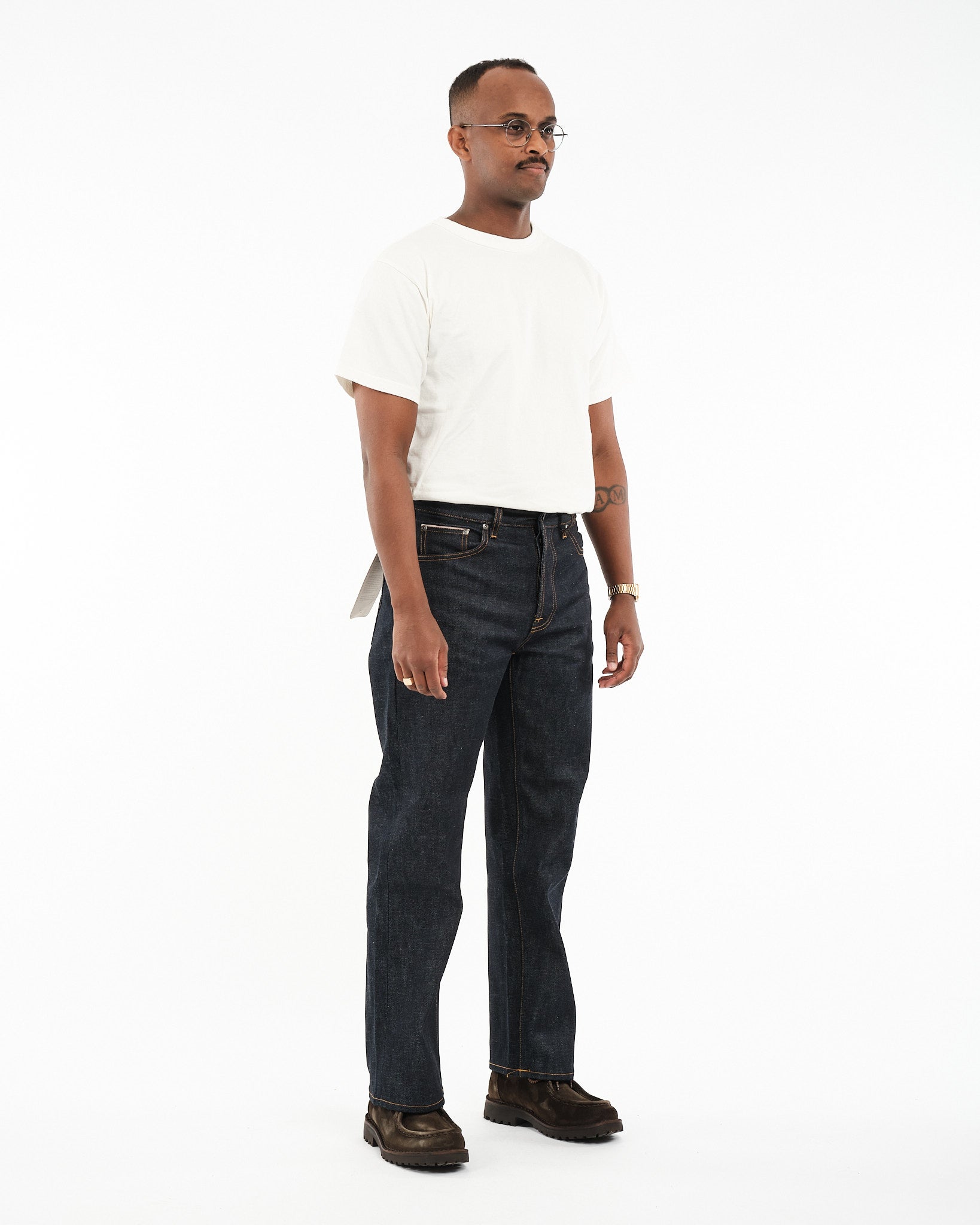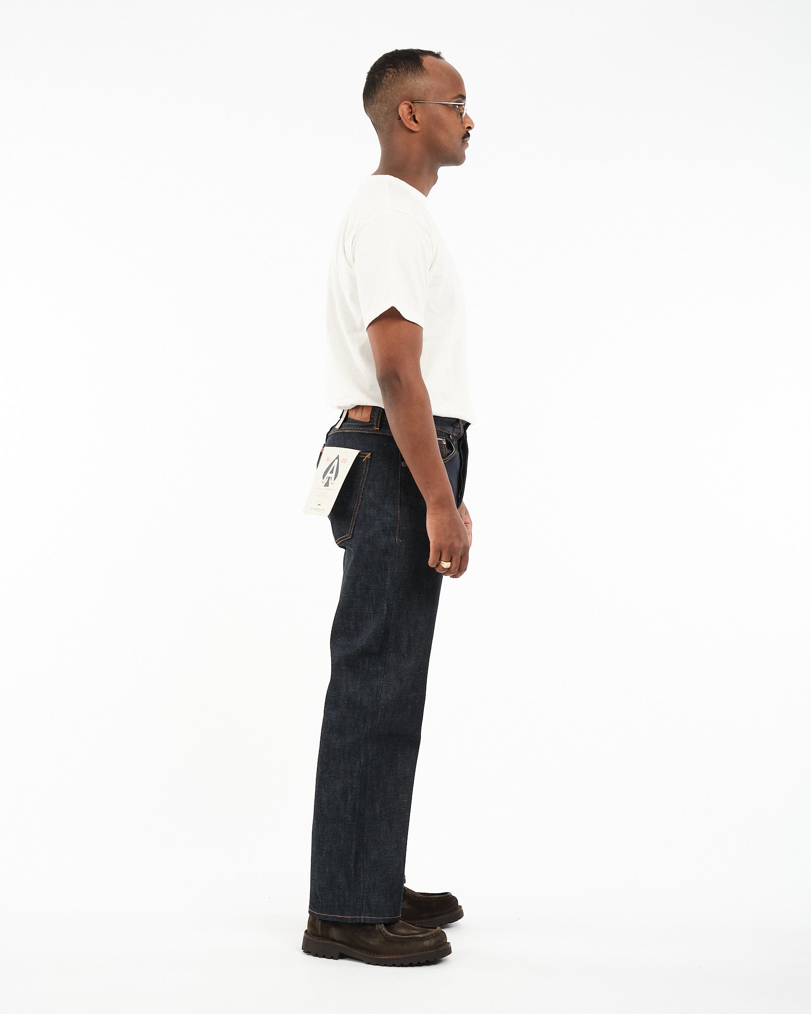 1. Denim de Selvage Japonais Premium : Fabriqué à partir de denim de selvage japonais rigide de 14,2 oz, connu pour sa durabilité exceptionnelle et sa texture de tissu emblématique.