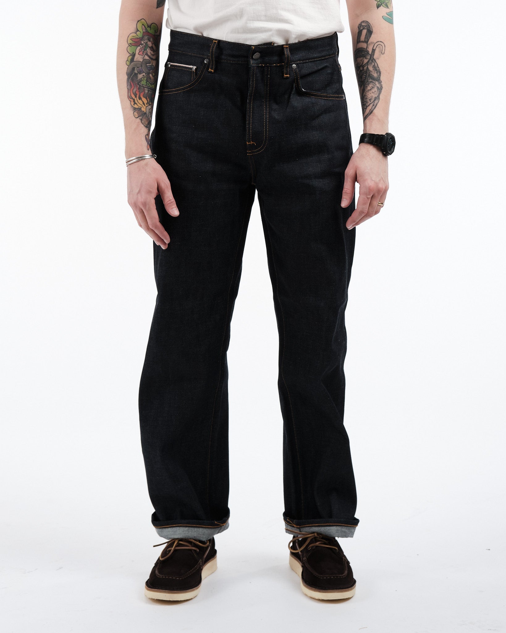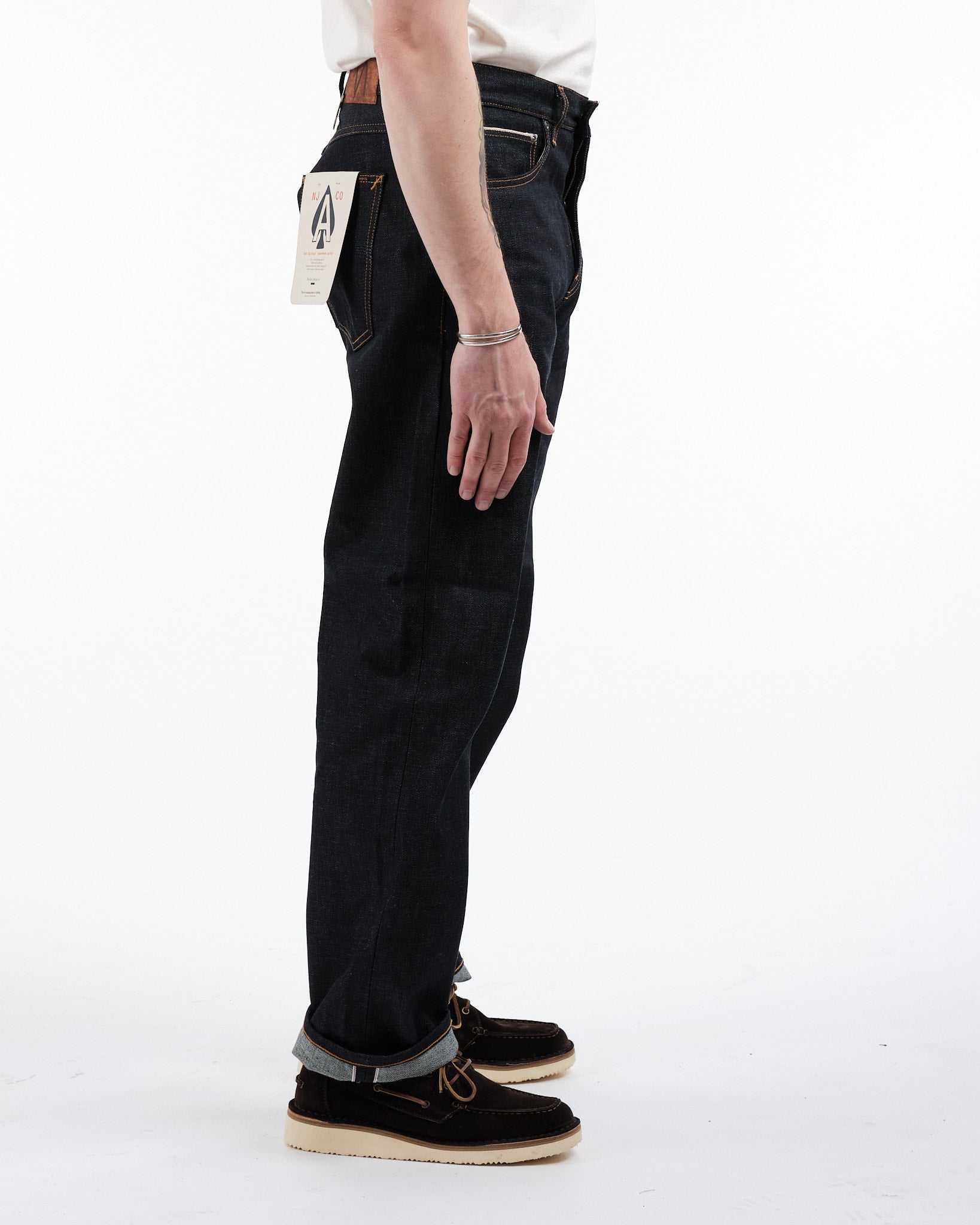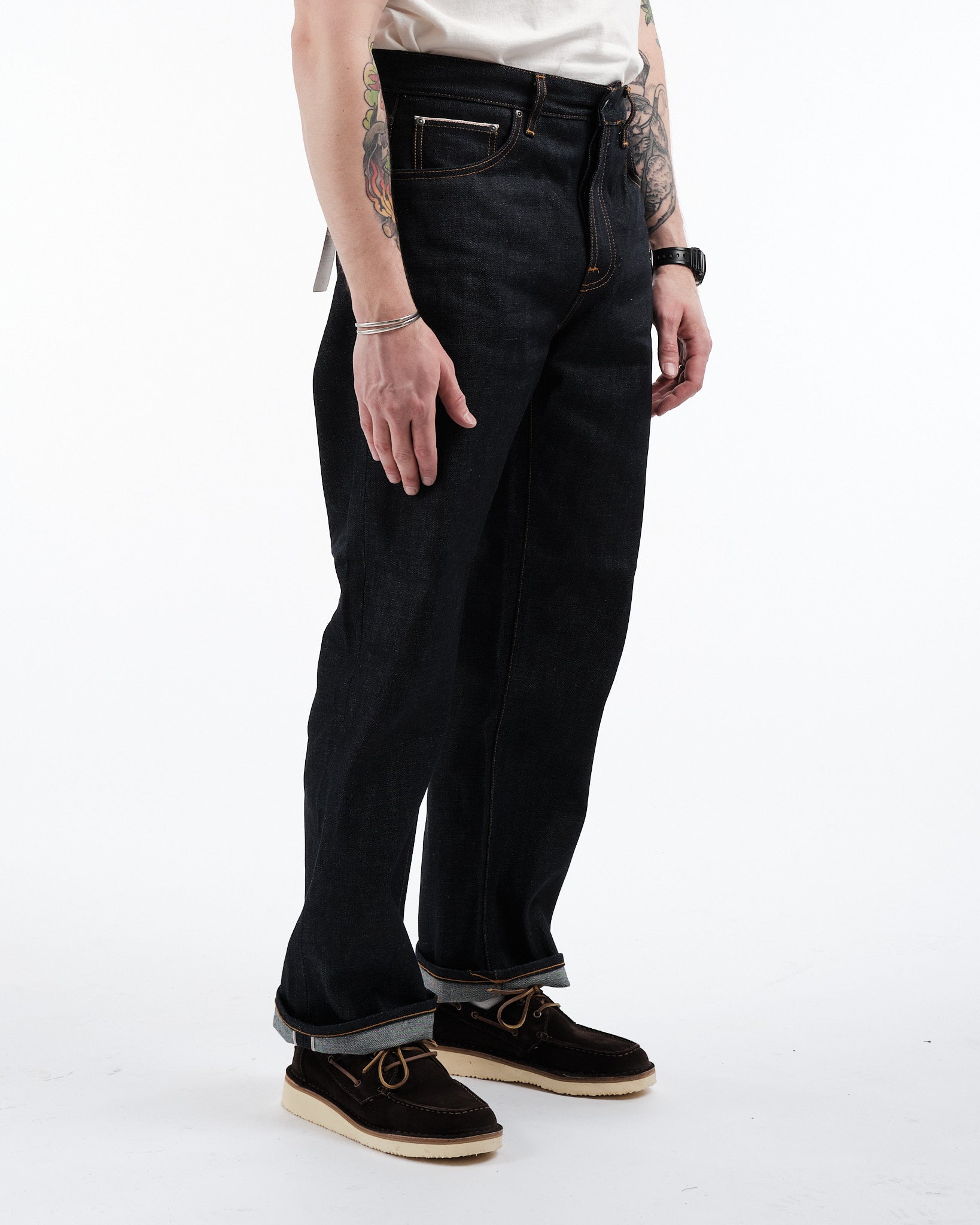 1. Denim de Selvage Japonais Premium : Fabriqué à partir de denim de selvage japonais rigide de 14,2 oz, connu pour sa durabilité exceptionnelle et sa texture de tissu emblématique.