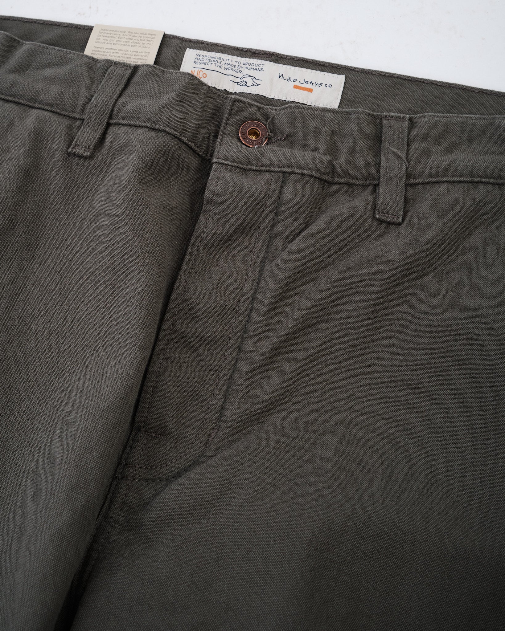 Le Nudie Jeans CO. Tuff Tony Pant embrasser l'essence de vêtements de travail authentiques, offrant un Ajustement lâche, jambe large et une taille haute confortable. Inspiré par équipement de chasse vintage du milieu du XXe siècle, ces pantalons fonctionnent boutons de couture tonale et de cuivre "beignet", ajoutant une esthétique de travail raffinée à une silhouette intemporelle.