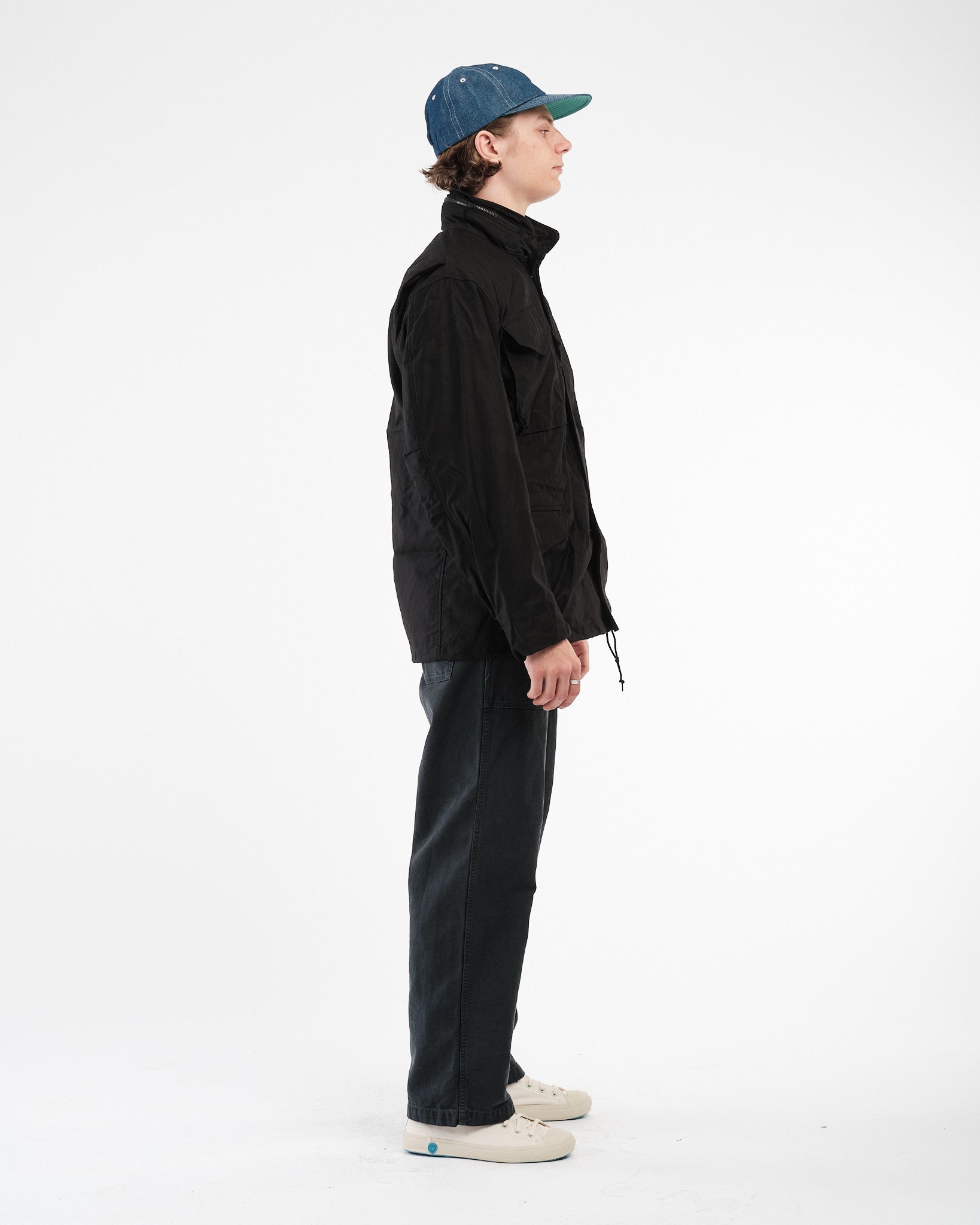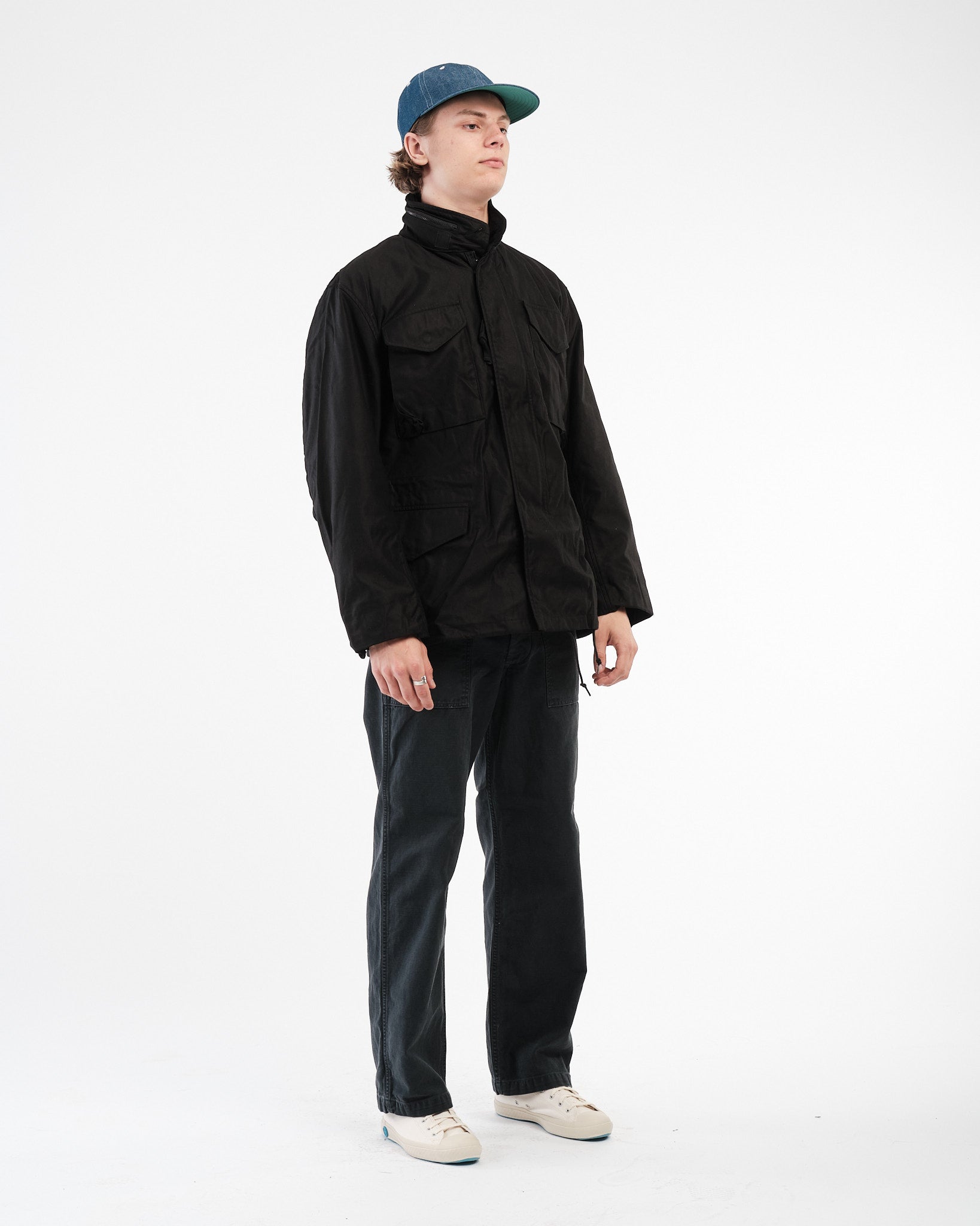 Le orSlow blouson de terrain M-65 de l'armée américaine en vert armée (Code de style :  01-6065-76) est une réinterprétation de la veste militaire classique qui intègre fonctionnalité  et artisanat de haute qualité. Fabriqué en satin de coton, ce blouson est conçu pour être à la fois confortable  et durable. Parmi les caractéristiques, on trouve un col de style chemise qui possède une capuche dissimulée  et un zip frontal sécurisé par un bouton-pression au niveau du col ainsi qu'une patte de boutonnage sécurisée par des boutons-pression à la taille. Le blouson possède des poches utilitaires; deux poches à rabat sur la poitrine et deux poches inférieures  pour les mains avec fermetures à bouton-pression. Pour assurer un ajustement parfait sur le corps, le blouson dispose de  cordons de serrage à la taille et autour de l'ourlet tandis que les poignets sont ajustables et descendent. Ce blouson est  bien construit avec un intérieur entièrement doublé et offre à la fois chaleur et peut être porté en toute saison, ce qui en fait  une pièce classique.