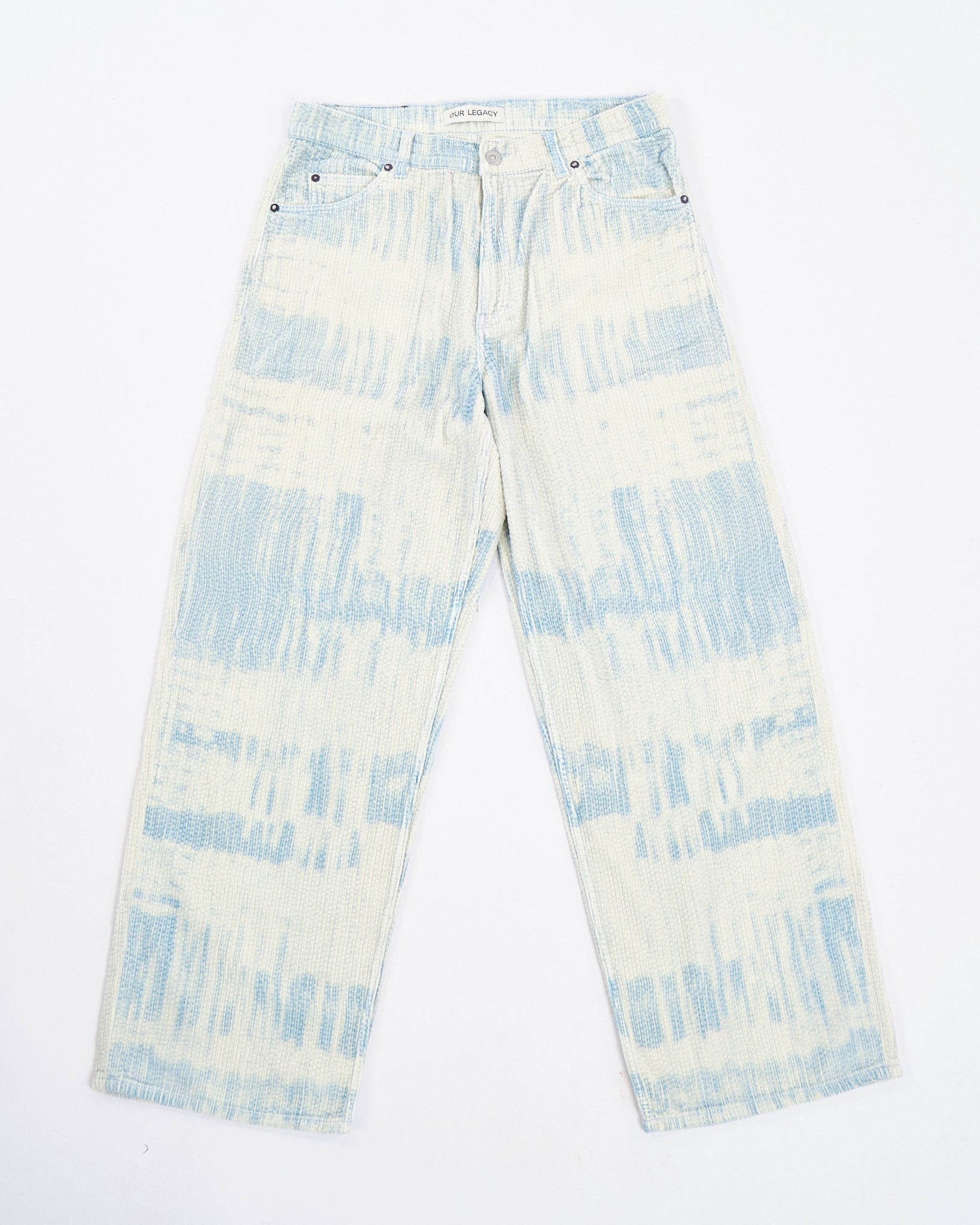 Découvrez le mélange de l'inspiration vintage et du design moderne avec la vaste coupe dans l'impression de coup de pinceau bleu de notre héritage. Fabriqués en Chine à partir d'un tissu en velours côtelé doux, ces jeans à taille haute offrent une vision élevée du design en jean classique. Ils présentent une coupe large et lâche et cinq poches, garantissant le confort et les fonctionnalités. Un patch en relief en relief et les rivets en cuivre ajoutent une touche de sophistication. Ce vêtement, avec une impression numérique unique rappelant les conceptions de denim vintage, doit être façonnée par son porteur et naturellement en détresse au fil du temps, terminant son processus de conception unique.