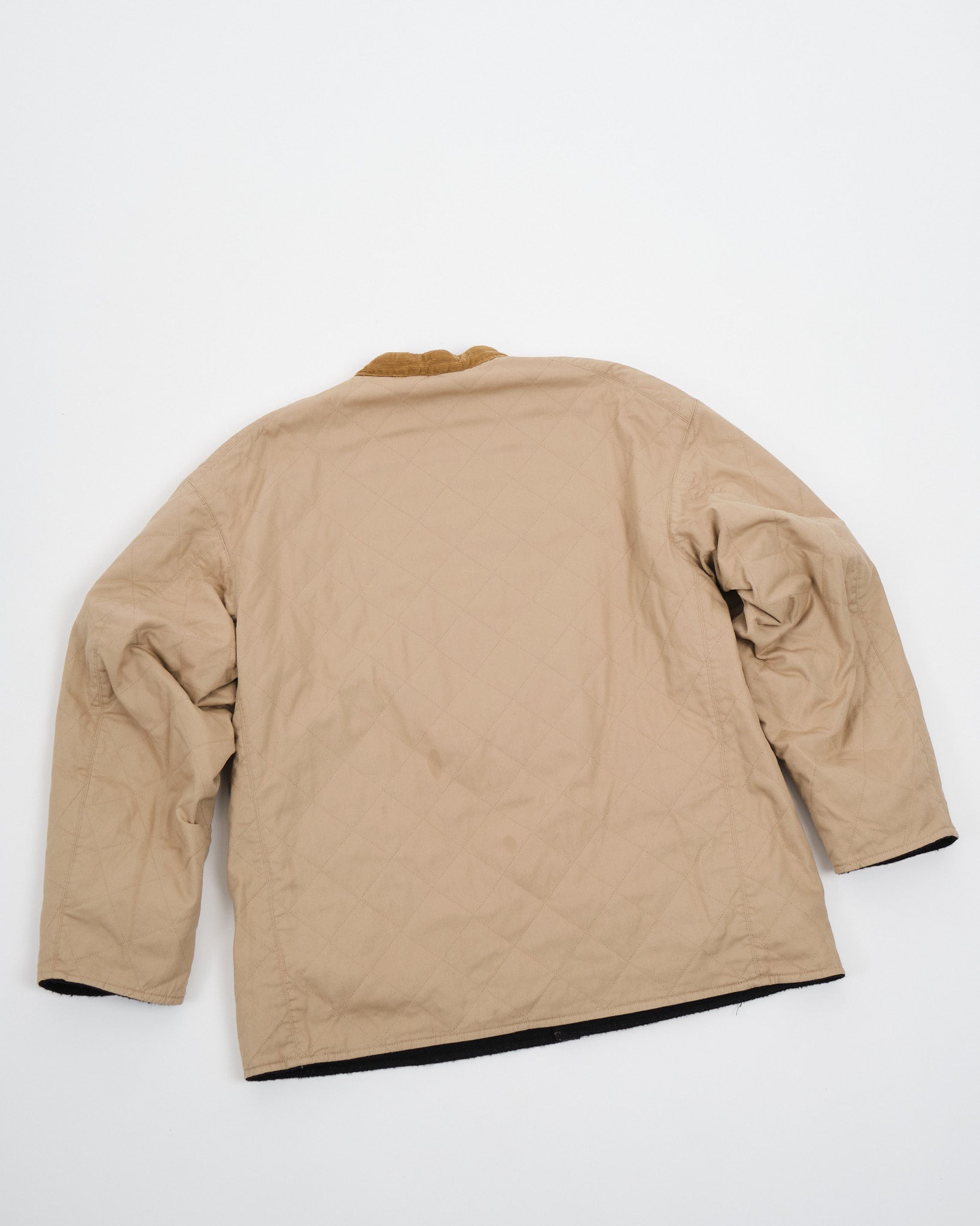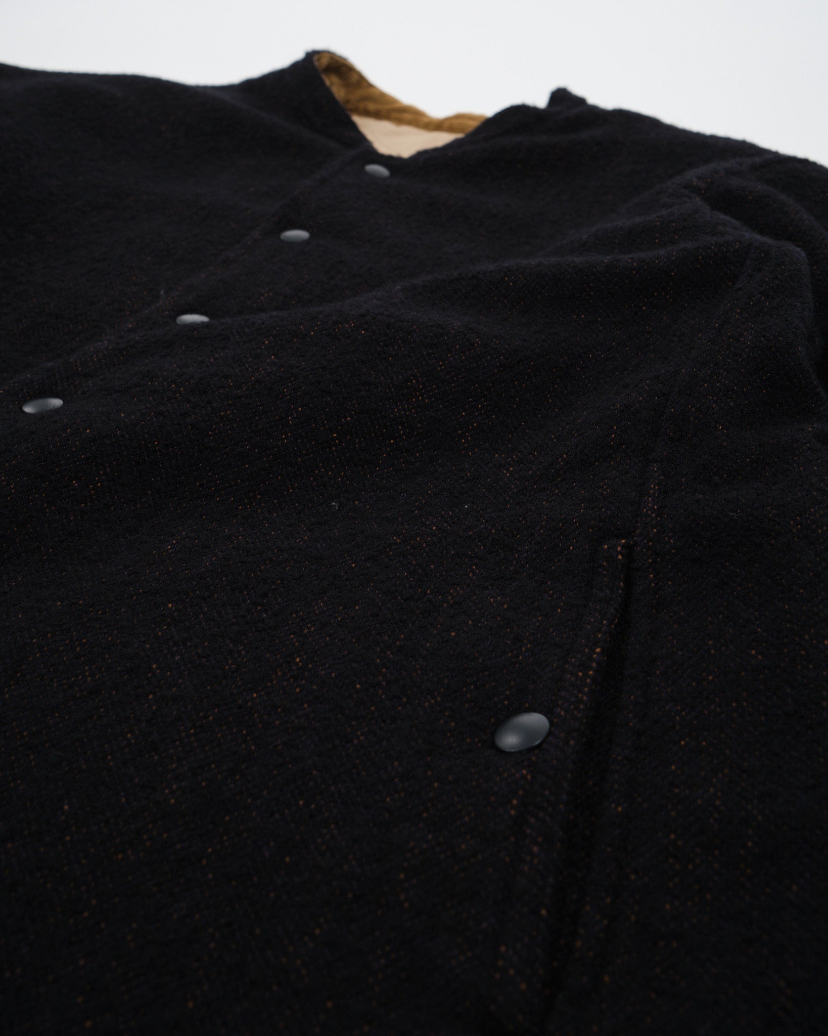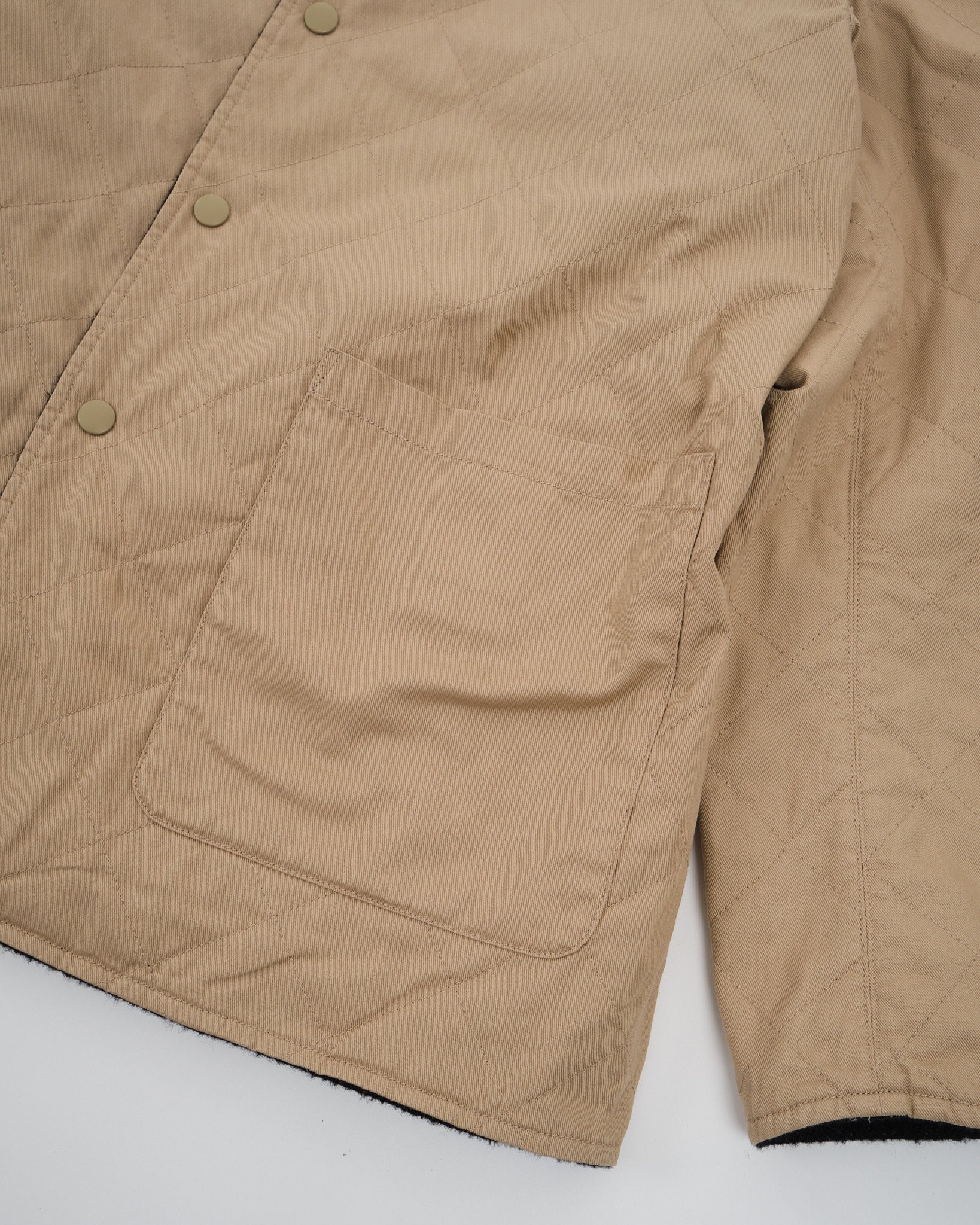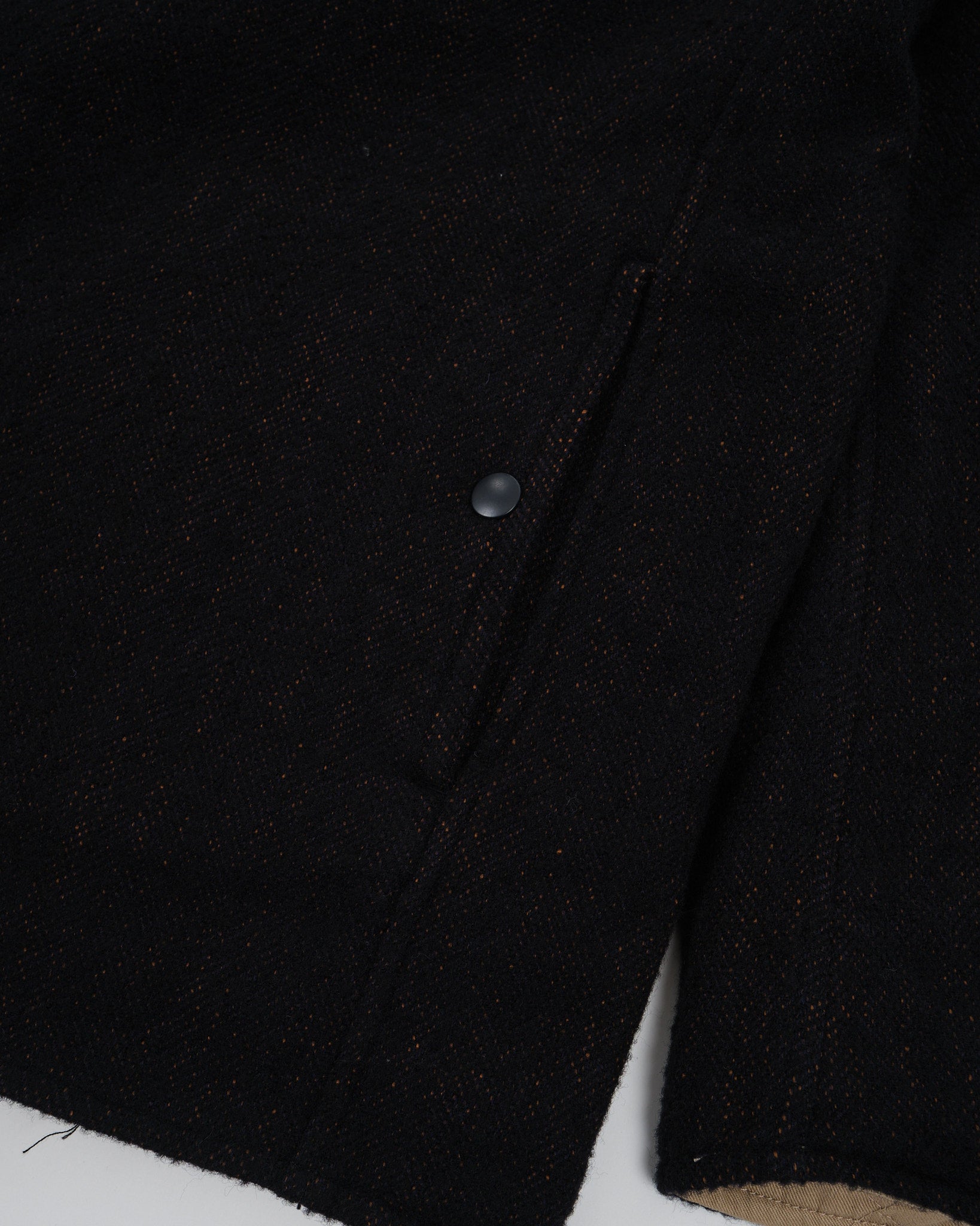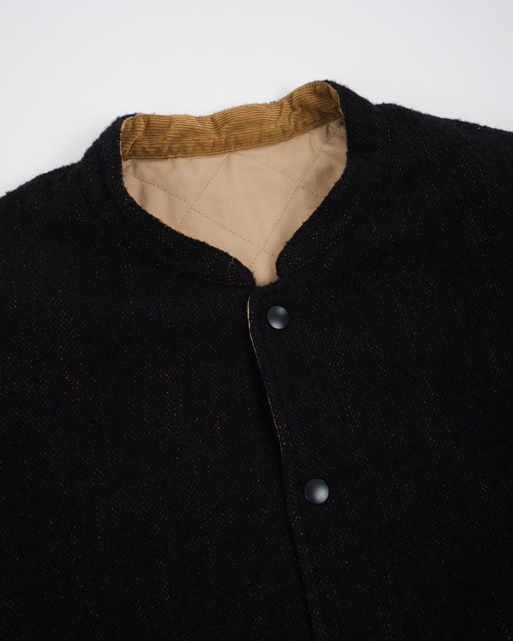 L'extérieur est drapé de tweed teint en fil, enrichi d'un motif à chevrons en laine entrelacés avec une boucle et un fil de dalle de grand -lle. À l'intérieur, tout est question de confort et de durabilité. La doublure en coton organique est augmentée par l'isolation de Primaloft, dérivée entièrement de matériaux recyclés. Profitez de la flexibilité de deux looks distincts avec sa fonction réversible.