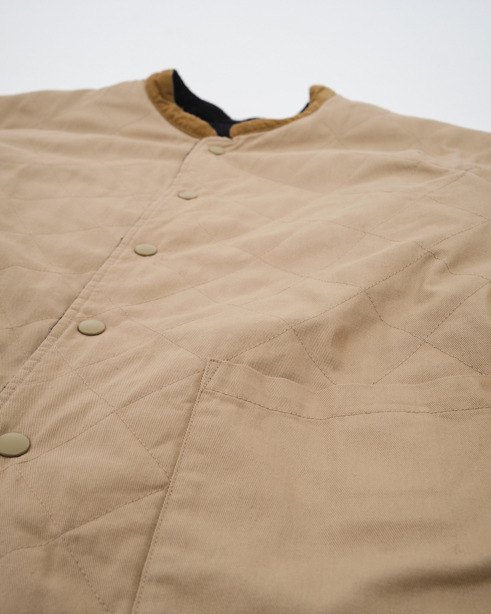 Élevez votre garde-robe avec la veste d'isolation réversible Nanamica dans la Marine, un mélange harmonieux de classique et contemporain. Modélisé après la conception équilibrée des vêtements de travail américains traditionnels, cette veste en col band arbore une silhouette détendue qui dégage l'élégance discrète.