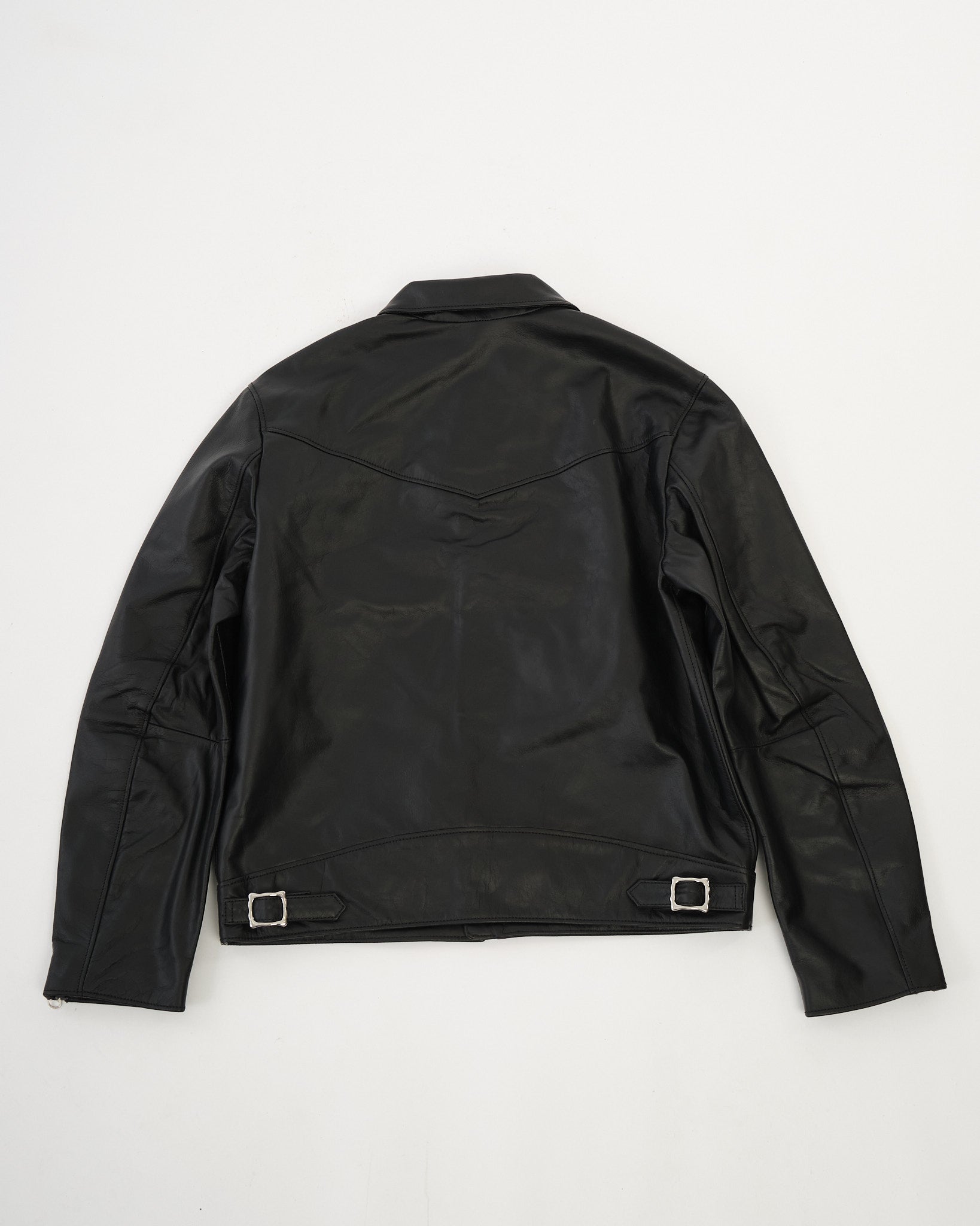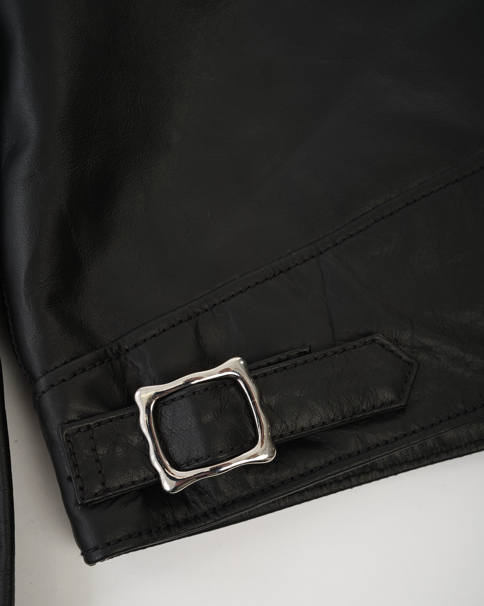 La veste présente des garnitures en métal argenté, des manches zippées et des pattes latérales bouclées pour un ajustement personnalisé et une touche de l'esprit rebelle.
