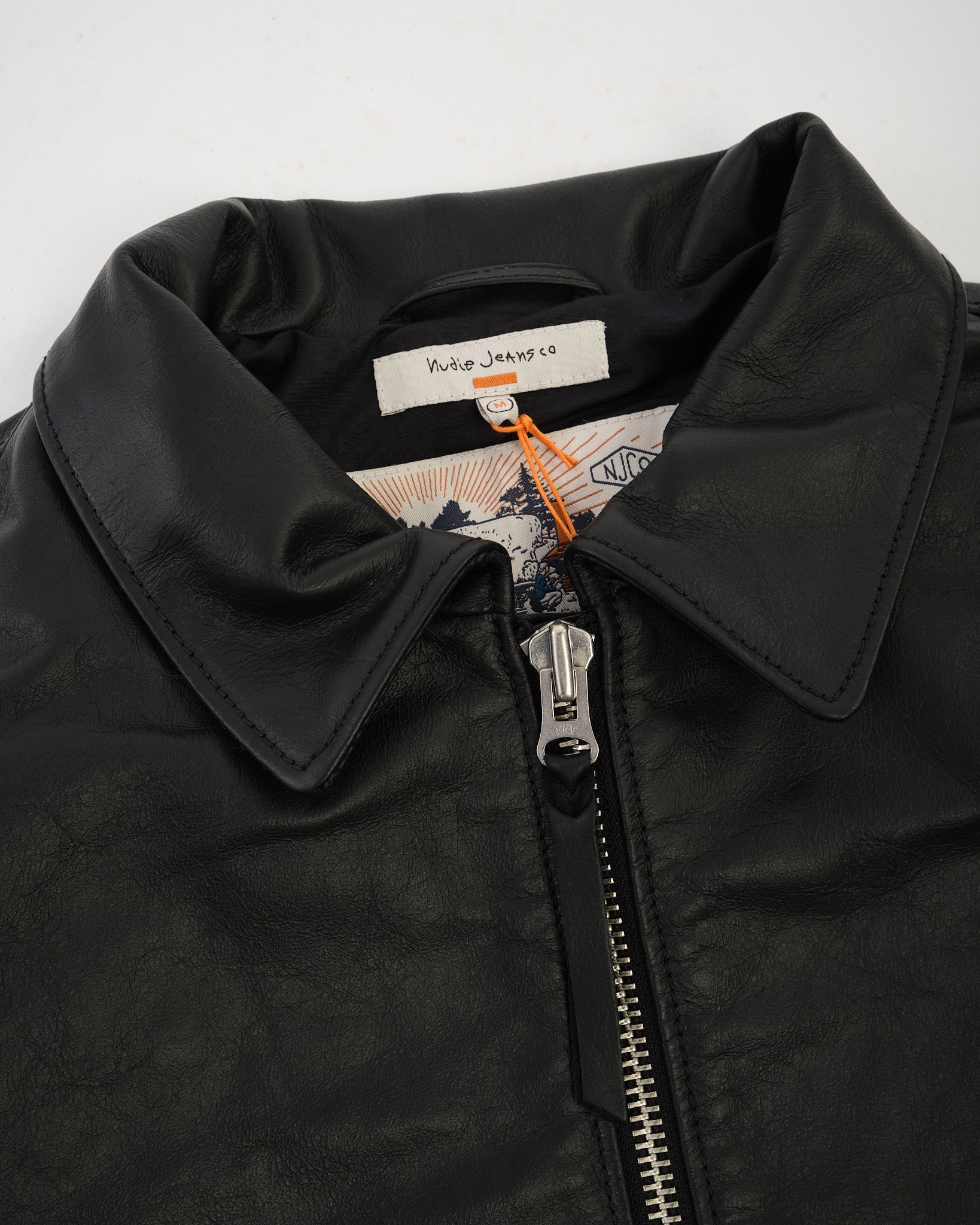 Boostez votre quotient de style, avec la veste en cuir Eddy Rider en noir de Nudie Jeans. Cette veste, adaptée à un ajustement dégage un charme tout en favorisant la durabilité grâce à l'utilisation de cuir buffle tanné végétal. Pour le compléter, il dispose d'une doublure entièrement de polyester 100% vous permettant de vous sentir bien, à la fois de votre apparence et de vos choix éco-conscients.