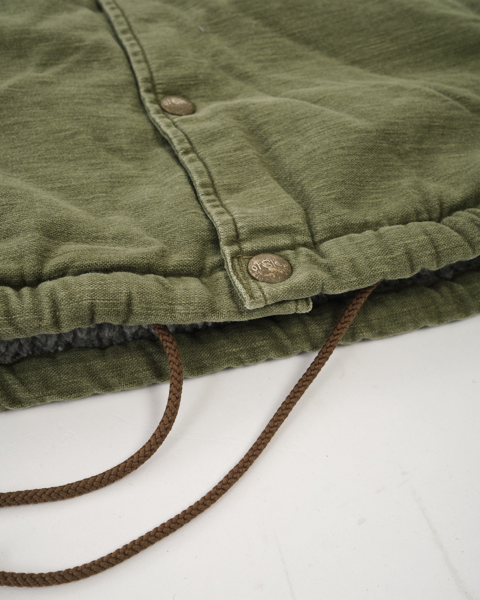 orSlow donne une touche cosy à la classique veste d'entraîneur. Fabriquée au Japon à partir de coton durable, cette version est lavée après confection pour un aspect vécu et accompagnée d'une doublure en polaire chaude. Le ton olive foncé ajoute une touche utilitaire, tandis que les boutons-pression, le cordon de serrage à l'ourlet et le col simple restent fidèles aux racines sportives du design. Légère à porter mais conçue pour les jours plus frais, c'est le type de veste qui équilibre aisance, confort et caractère dans le vrai style orSlow.
