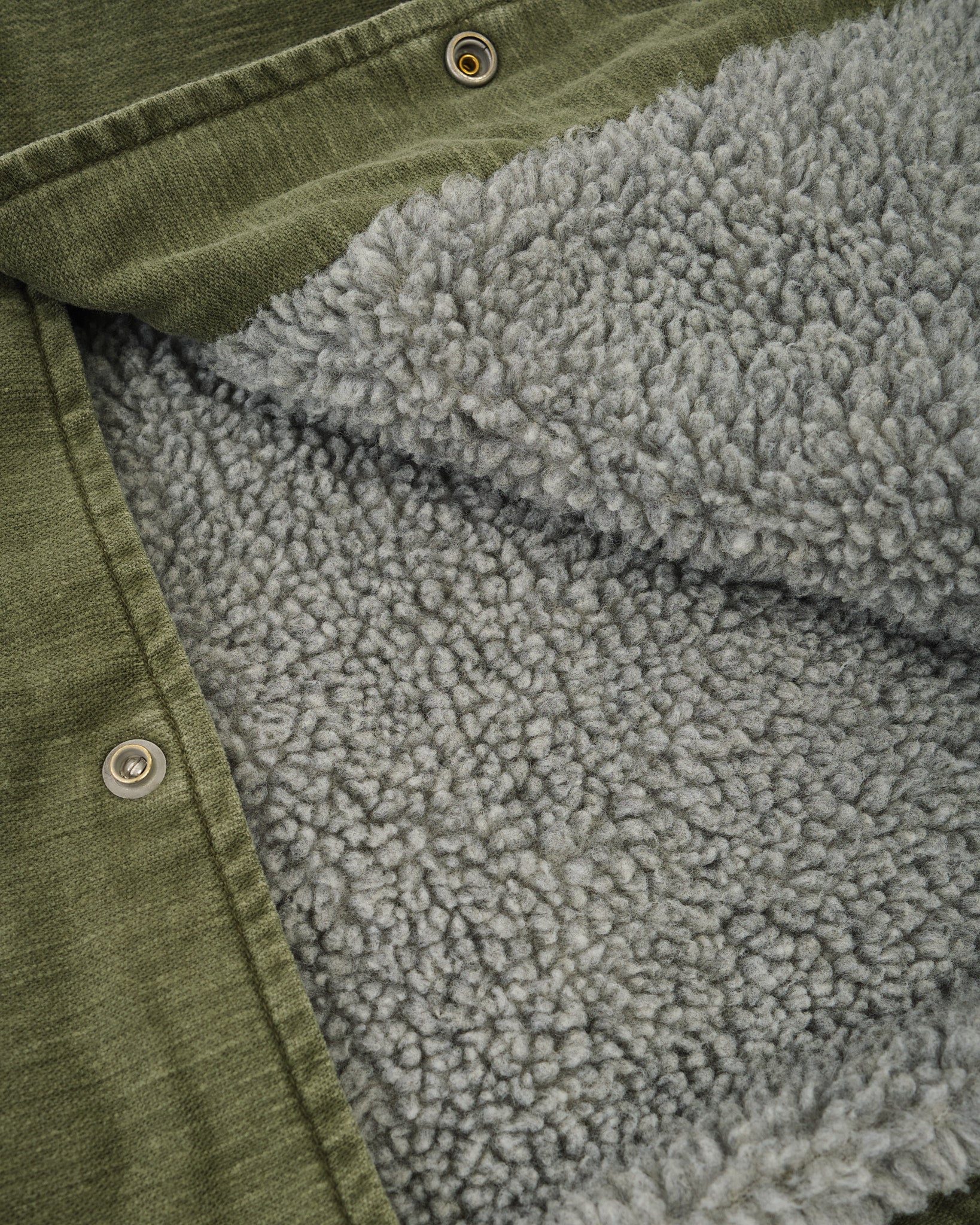 VINTAGE WASHED COACH JACKET WITH FLEECE LINING DARK OLIVE