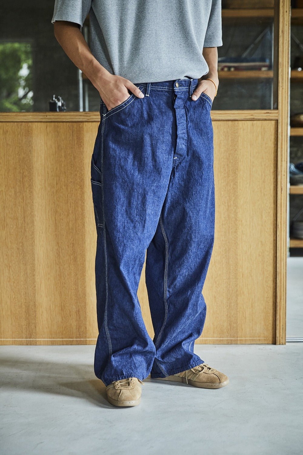 Fabriqué au Japon avec des machines à coudre vintage et une attention sérieuse aux détails, cette paire est destinée à ceux qui veulent de l'espace pour bouger, tant en jambe qu'en esprit.