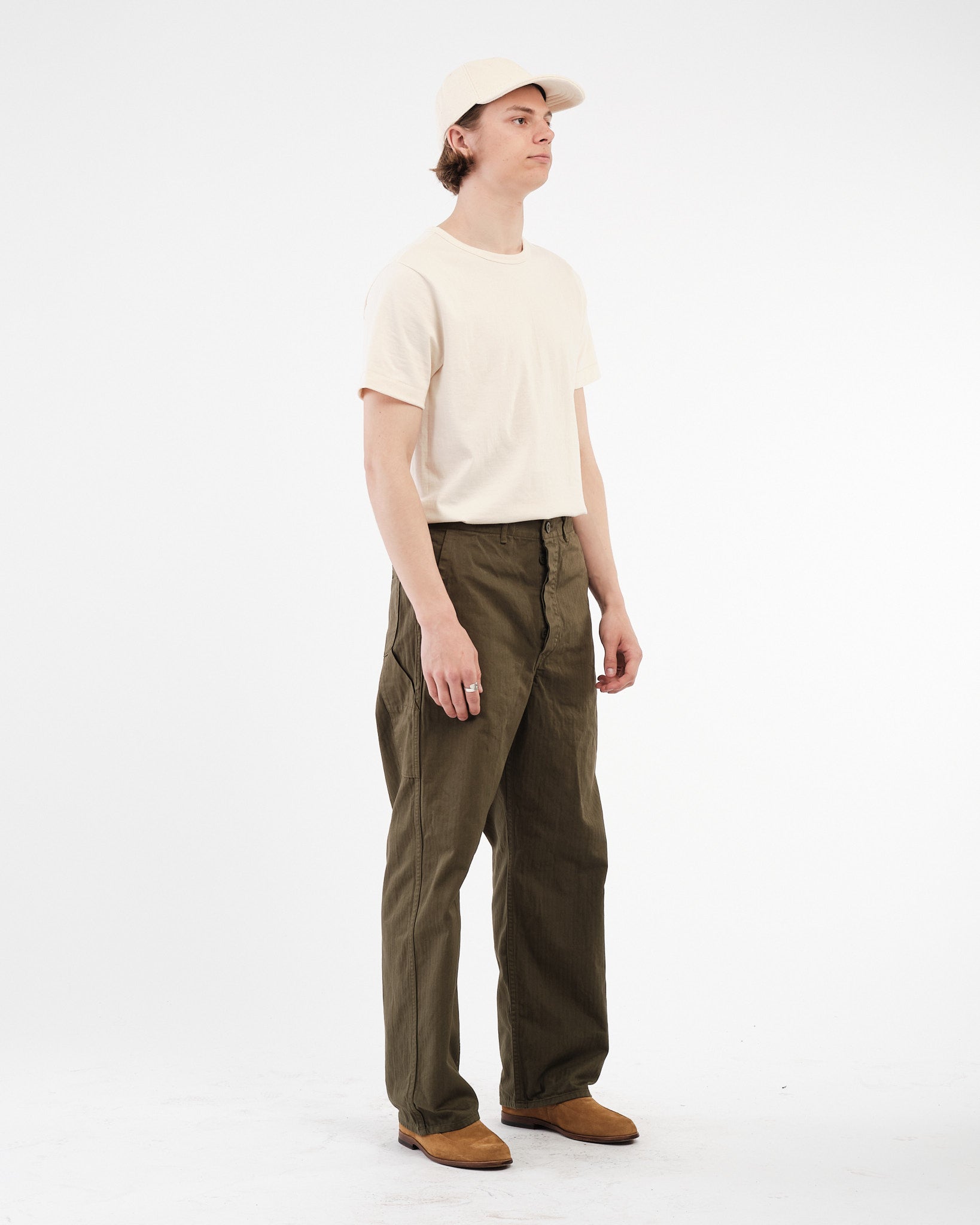 Le pantalon de travail français à large étendue Orslow dans l'armée verte rend hommage à la tenue de travail française avec une conception de jambe large détendue qui combine le confort et la praticité de manière équilibrée. Fabriqué au Japon à partir de matériaux de coton avec une taille de grande hauteur et une silhouette de jambe spacieuse pour une mobilité accrue. La teinte verte de l'armée polyvalente ajoute une touche inspirée du style militaire, ce qui les rend parfaites, pour des environnements décontractés ou légèrement formels. Ces pantalons sont fabriqués avec les deux poches arrière qui ne sont pas seulement élégantes mais aussi pratiques. Un témoignage de l'engagement d'Orslows, à l'artisanat de qualité.
